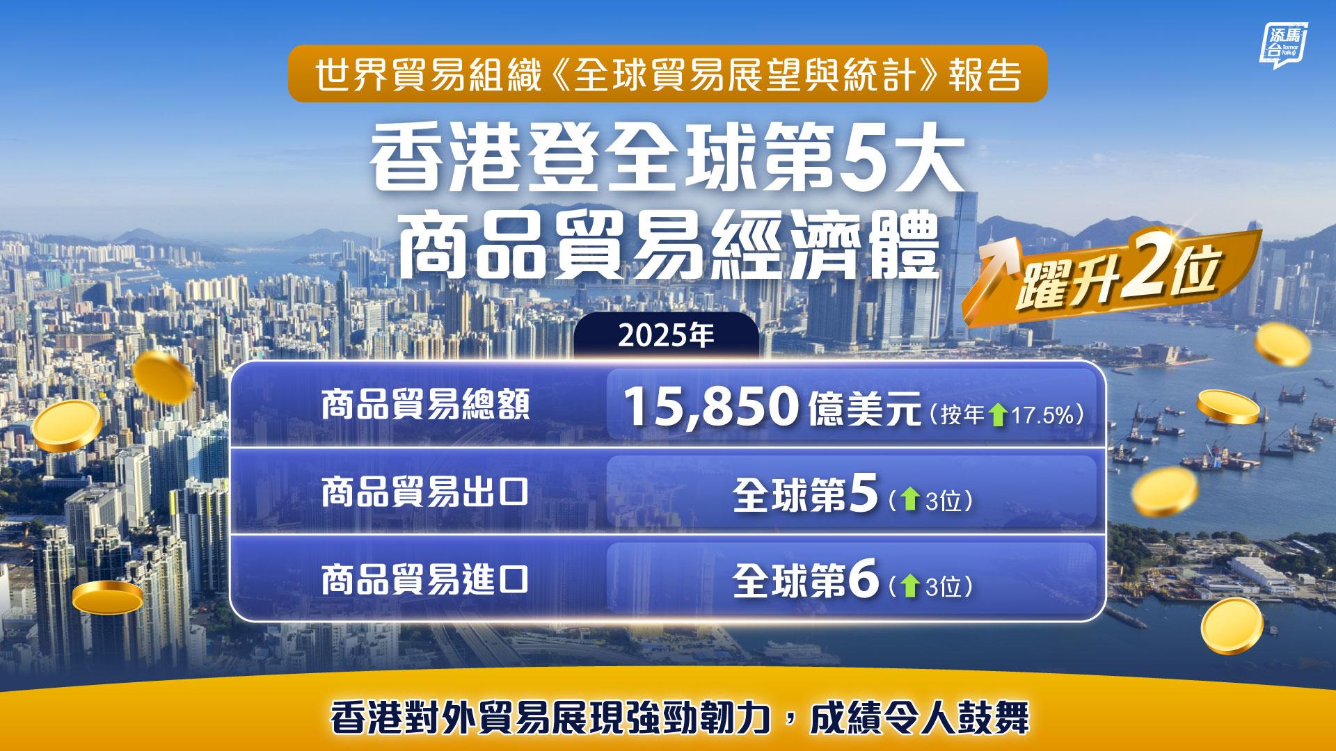 香港跃升至全球第五大商品贸易经济体 丘应桦:香港展现强劲韧力