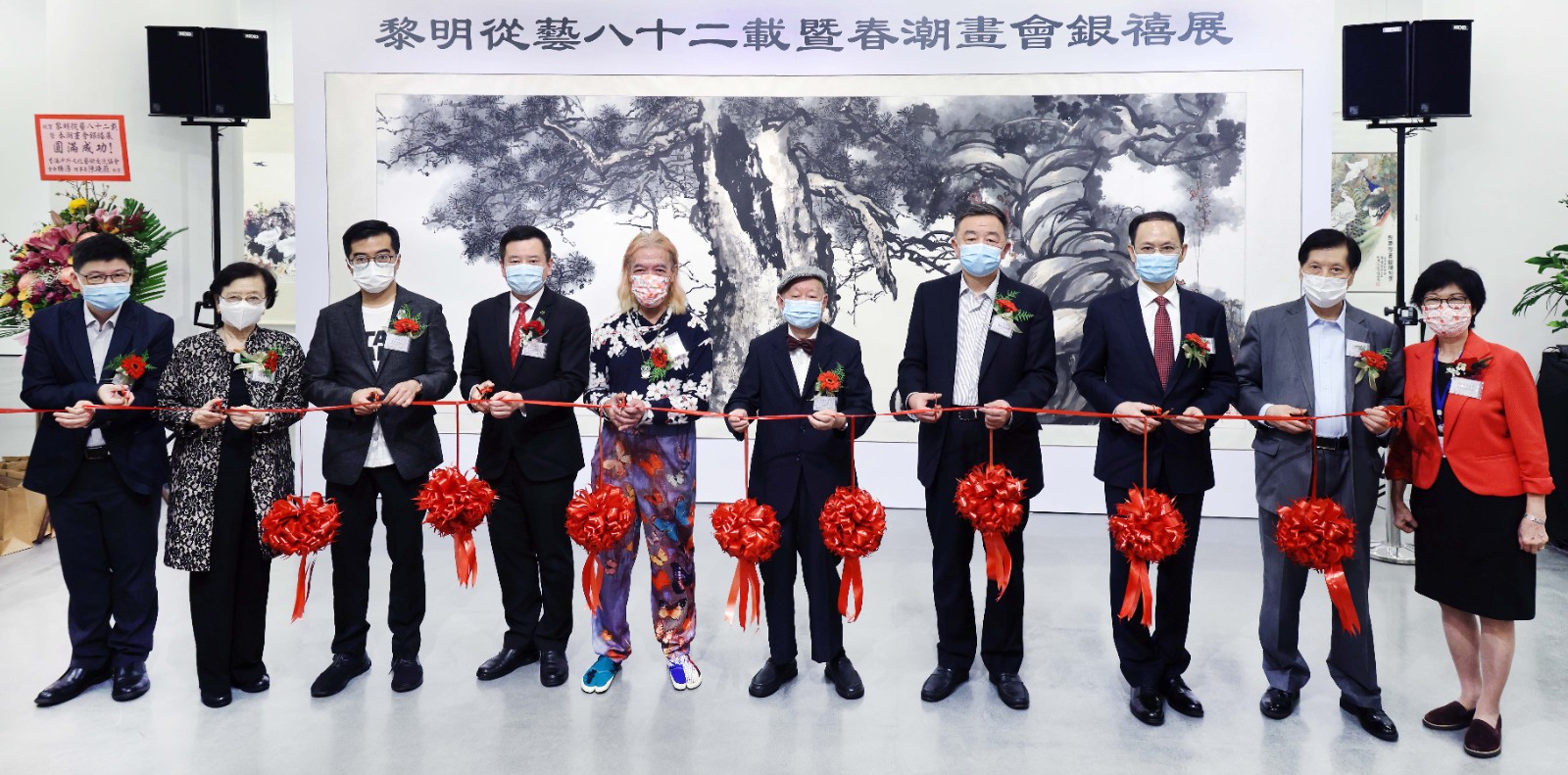 (紫荆香港讯)2021年11月5日,春睡余风—黎明从艺八十二载作品展于香港中央图书馆展览厅开幕。展览由香港春潮画会举办,香港文化博物馆馆长邓民亮先生、香港艺术发展局视觉艺术组主席黑国强先生、香港理工大学副校长杨立伟教授、香港大公文汇传媒集团副董事长姜亚兵先生、香港商报常务副社长张宝兴先生、云峰画苑董事长郭浩满先生、香港浸会大学视觉艺术院客座教授邓海超教授、香港春潮画会顾问高美庆教授,以及春潮画会会长黎明伉俪出席开幕典礼。