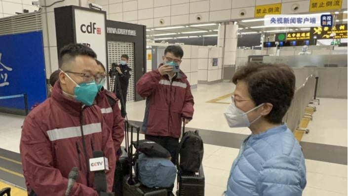 内地支援香港抗疫流行病学专家组今日(17日)下午抵港,行政长官林郑月娥和香港中联办负责人等到深圳湾口岸迎接。