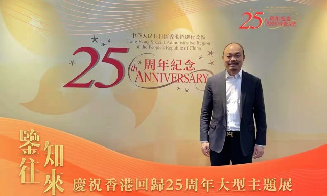 香港平潭社团联会主席林官贵香港平潭社团联会林官贵主席表示,香港回归祖国25周年是一个重要的里程碑,意义重大,我们都感到很振奋、很鼓舞。25年来,香港有强大的祖国做靠山,经历了风风雨雨的考验,继续保持繁荣稳定的大好局面。特别是前年以来,在中央的指路引航下,香港实施国安法,成功落实爱国者治港原则,“一国两制”得到进一步认真的落实和贯彻。当前,香港正处在由治及兴的关键时期。今天大家来参观图片展,就是让每一位岚籍乡亲都可以通过亲身感受这些珍贵图片的魅力,加强对香港未来的信心,对祖国的热爱、对香港的热爱。