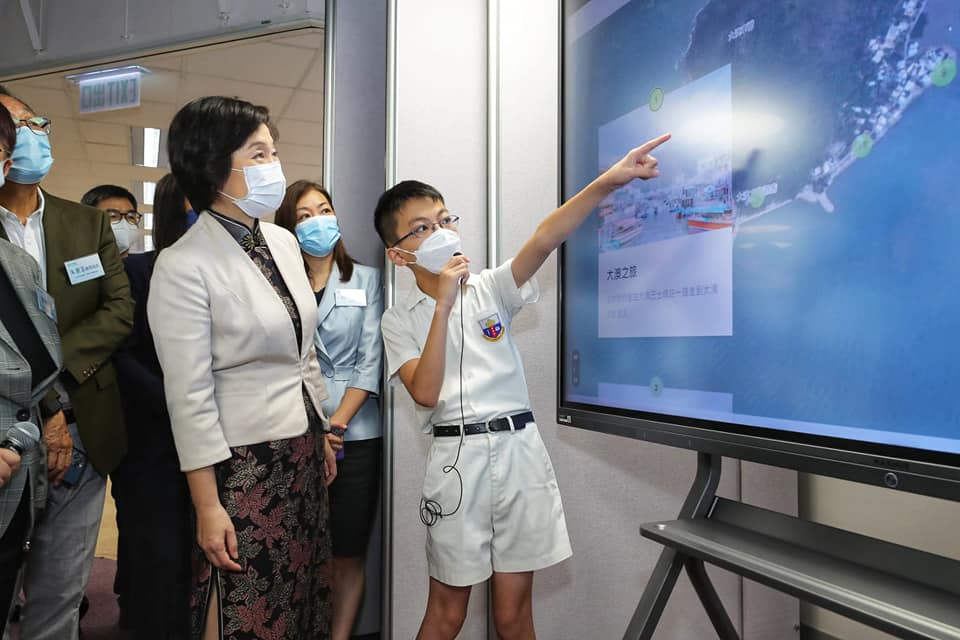 蔡若莲昨日到访位于观塘的“地理空间实验室”听取“2022地理信息系统﹙GIS﹚应用公开赛”得奖同学的分享。她指,都市人的生活离不开地理空间数据,也是推动智慧城市发展的重要元素。她感受到同学很用心和投入,希望教育界更多参与。