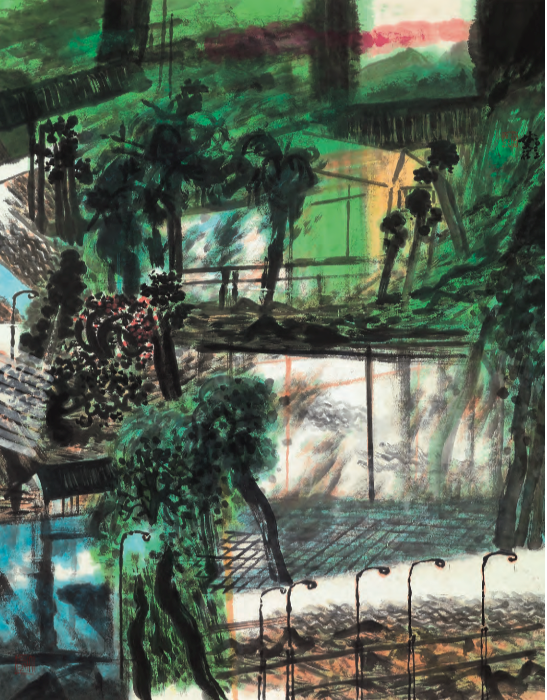 林天行作为香港水墨的开拓者与践行者,对香港当代水墨有著深远的影响,他以独特的视觉方式,完满的构图与空灵的意境,游离在具象和抽象之间,时而厚重时而清雅的大面积色墨,交织在一起,其自由豪迈的笔触将「精神的真实」与「感觉的形象化」清晰表现出来,形成了强烈的个人风格,开拓了水墨重彩画的新境象。