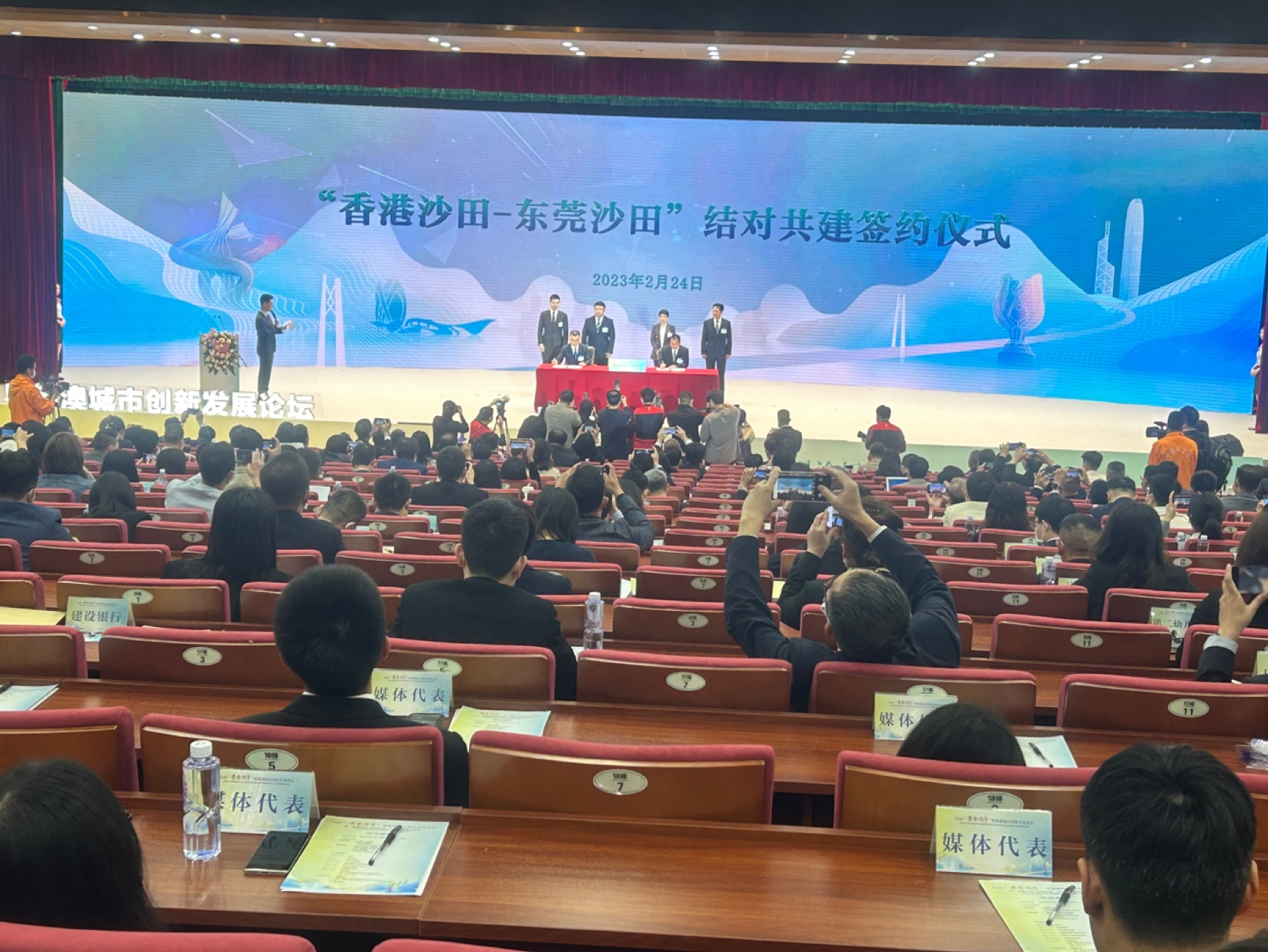 东莞与香港两地人缘相亲、血脉相连,同时也是最佳拍档。东莞有沙田镇,香港有沙田区,二者同以“沙田”为名。为深化莞港两地合作交流,东莞沙田与香港沙田将携手开创合作新局面。活动上,东莞沙田与香港沙田代表共同签署合作协议书,在科技创新、产业协同、人才建设等方面互学互鉴、强强联合,推动莞港合作共建走深走实、见行见效,不断谱写两地发展新篇章。