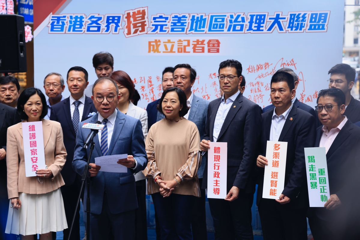有见及此,今日(5日),多个团体联合成立“香港各界撑完善地区治理大联盟”,并由全国人大常委会委员、立法会议员李慧琼担任总召集人,并于铜锣湾举行成立记者会。