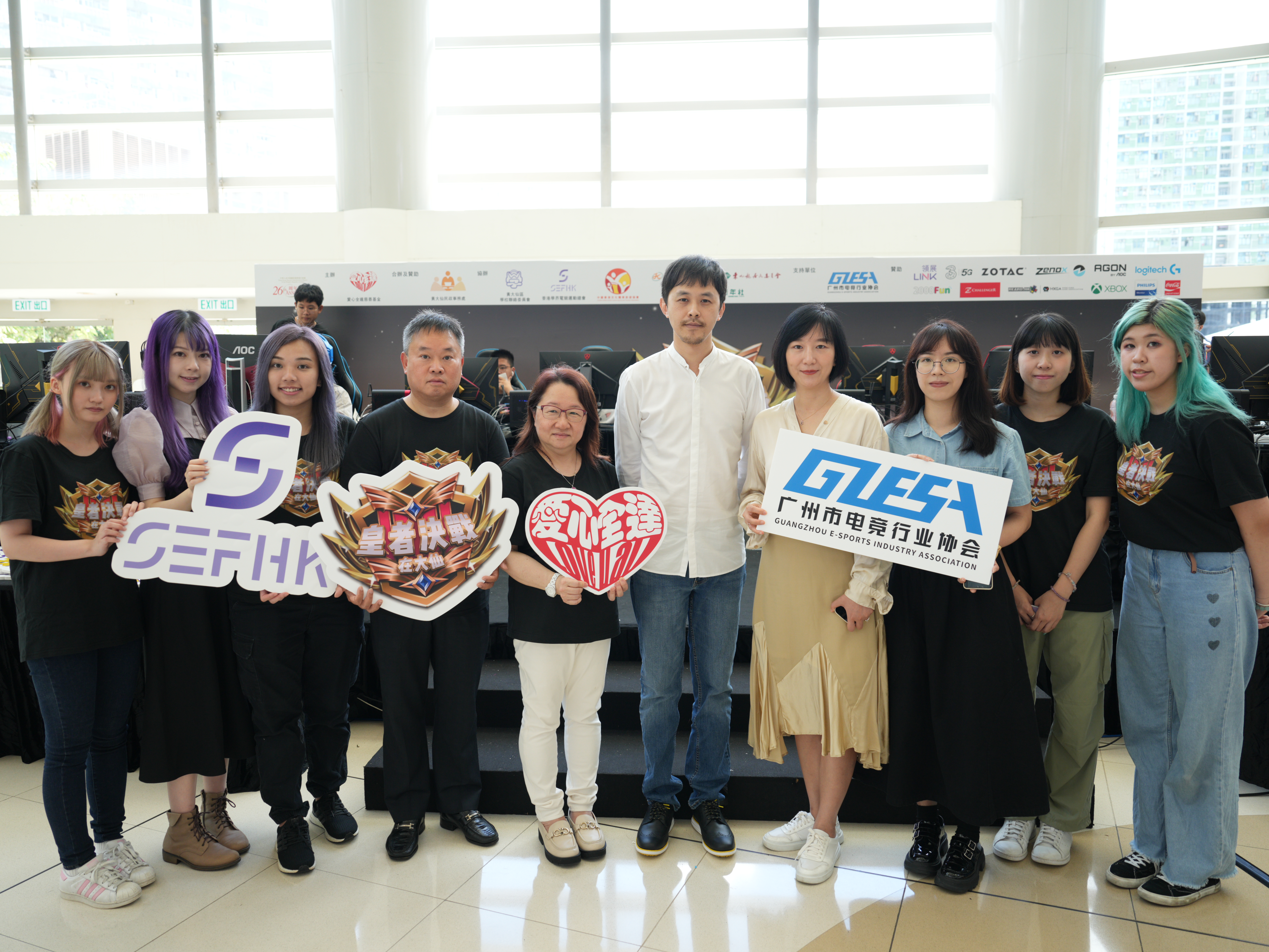 (右五)广州市电竞行业协会会长林云帆、(左五)爱心全达董事 活动召集人姚逸华、(左四)爱心全达董事黄业坤与支持单位代表合影主办方借此比赛希望穗港两地的电竞爱好者能锻炼心智并增进电竞专业知识。林云帆会长在活动分享中介绍了内地电竞行业的日常及发展,让与会各界加深对国家及世界电竞行业的认识。