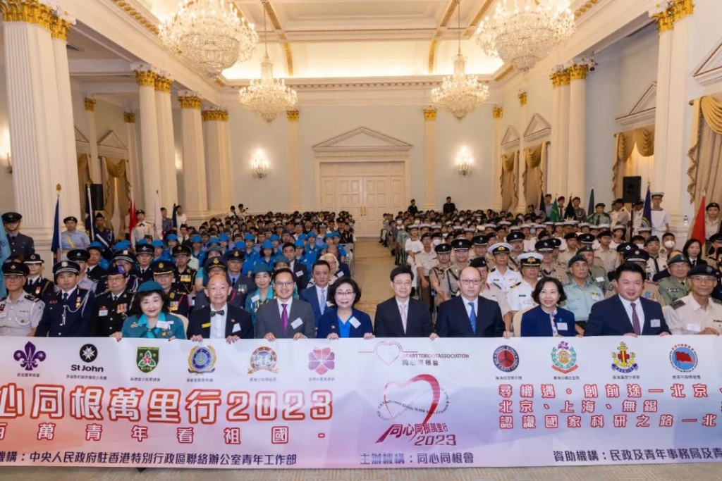 7月14日,“同心同根万里行2023”授旗礼在香港礼宾府举行,香港特区行政长官李家超、中央政府驻港联络办主任郑雁雄出席并致辞。