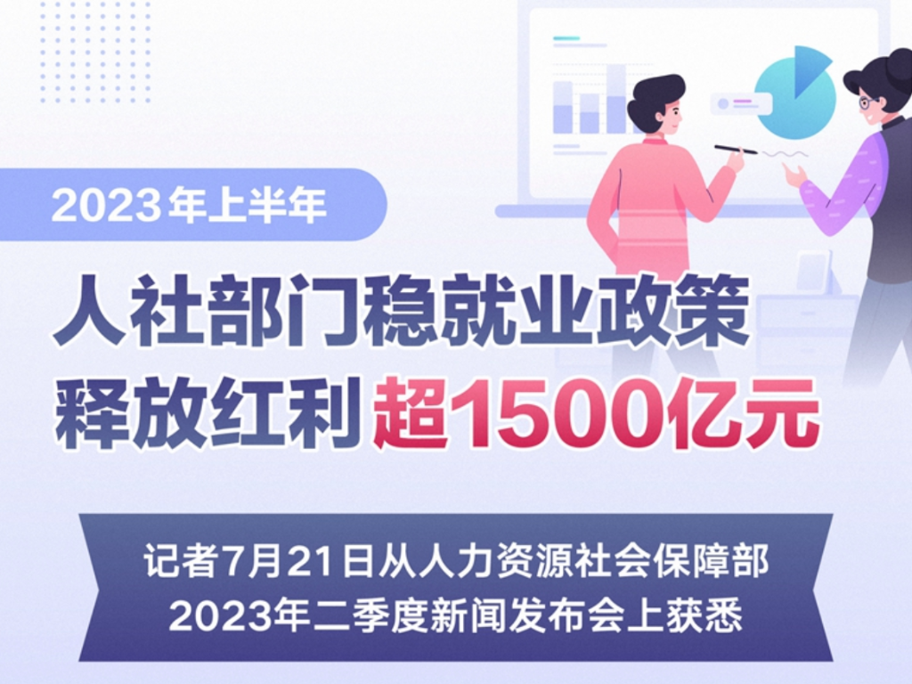 记者21日从人力资源社会保障部2023年二季度新闻发布会上获悉,1至6月,全国发放就业补助资金528亿元,阶段性降低失业、工伤保险费率为企业减少成本超过860亿元,失业保险基金稳岗支出176亿元。上述稳就业政策释放红利超1500亿元。