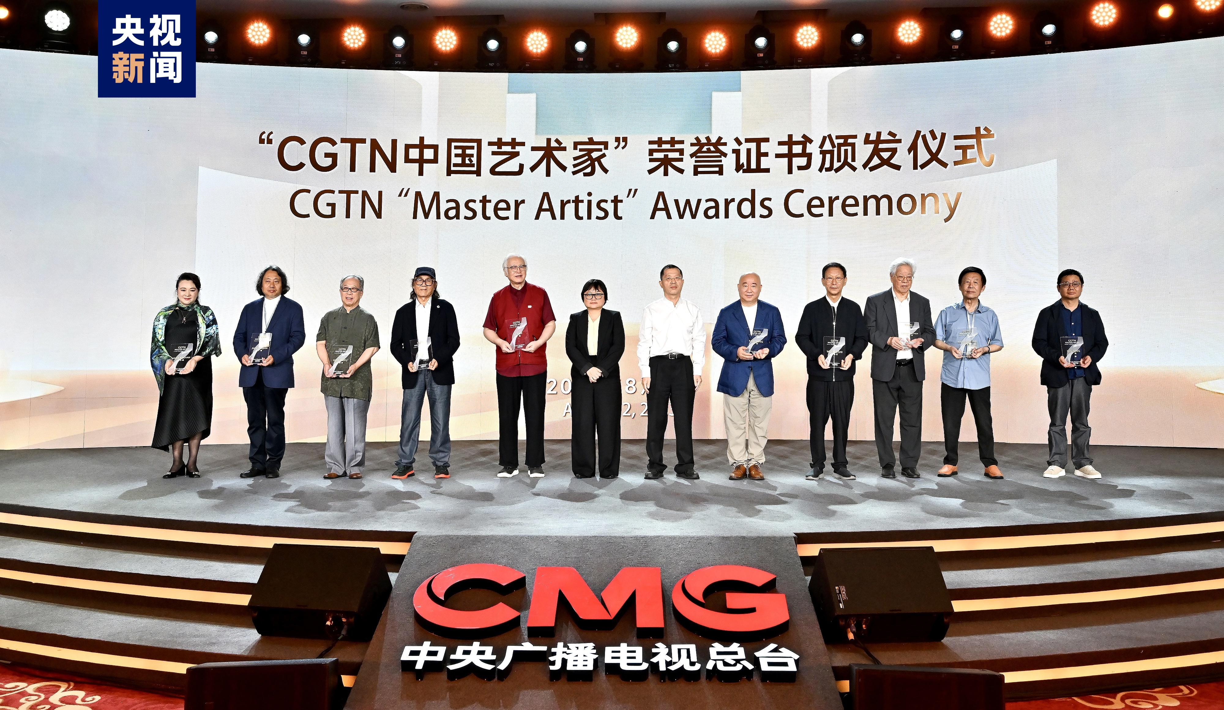 活动现场,中央广播电视总台总编室主任梁建增和香港特别行政区政府驻北京办事处副主任阮慧贤为10位艺术家颁发“CGTN中国艺术家”荣誉证书。他们是:中国国家画院艺委会顾问、中国艺术研究院博士生导师范扬,李苦禅之子、中央文史研究馆馆员、清华大学美术学院教授李燕,中国国家画院研究员吴悦石,中国国家画院研究员、北京画院艺委会原副主任、北京石齐画院院长石齐,中央美术学院教授、复旦大学艺术与哲学研究中心特聘研究员、中央文史研究馆资深馆员张立辰,中国美术家协会会员、一级美术师、北京画院艺术委员会委员郭石夫,天津美术学院院长、中国国家画院花鸟所名誉所长贾广健,中华曲艺学会副会长、本溪文联名誉主席田连元,中央美术学院中国画与书法学院副院长丘挺,中国国家画院研究员、王子武艺术研究院院长、燕和中国画学会会长王小燕。