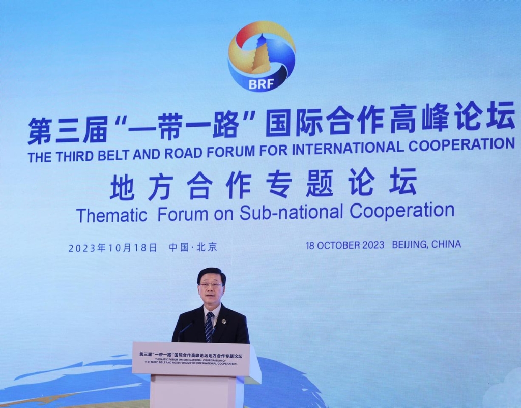 第三届“一带一路”国际合作高峰论坛今早(10月18日)正式开幕。李家超表示,对于习主席宣布国家支持高质量共建“一带一路”的八项行动,他和香港代表团成员都感到很振奋,因为这些行动将为香港带来更多发展机遇和空间。香港必定会全力参与其中,把握好香港在“一国两制”下“背靠祖国、联通世界”的得天独厚优势,积极推动这八项行动。