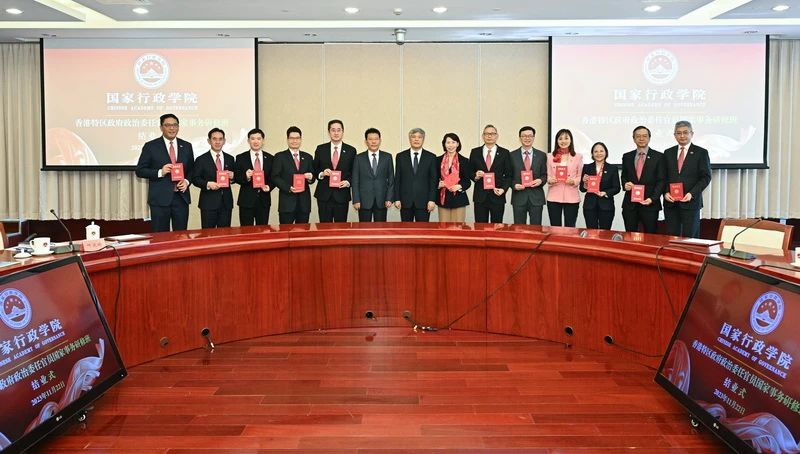 11月22日上午,国务院港澳事务办公室副主任王灵桂在国家行政学院出席香港特区政府政治委任官员国家事务研修班结业式并讲话。