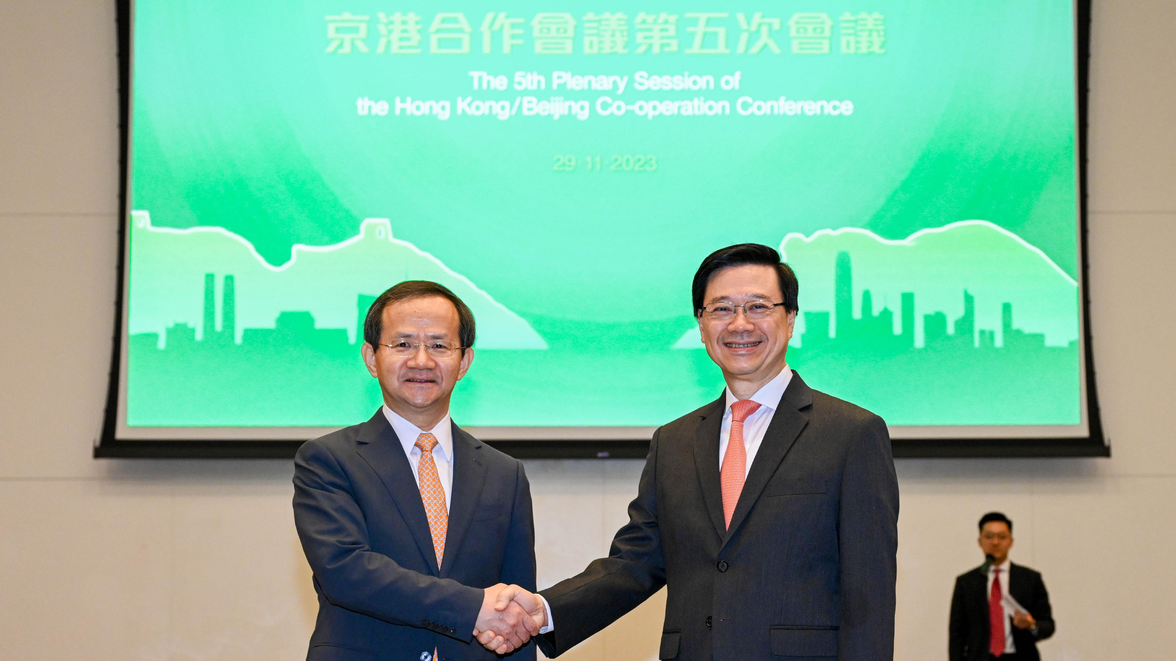 香港特区行政长官李家超率领香港特区政府代表团与北京市市长殷勇率领的北京市代表团,今日(11月29日)在香港举行京港合作会议第五次会议。