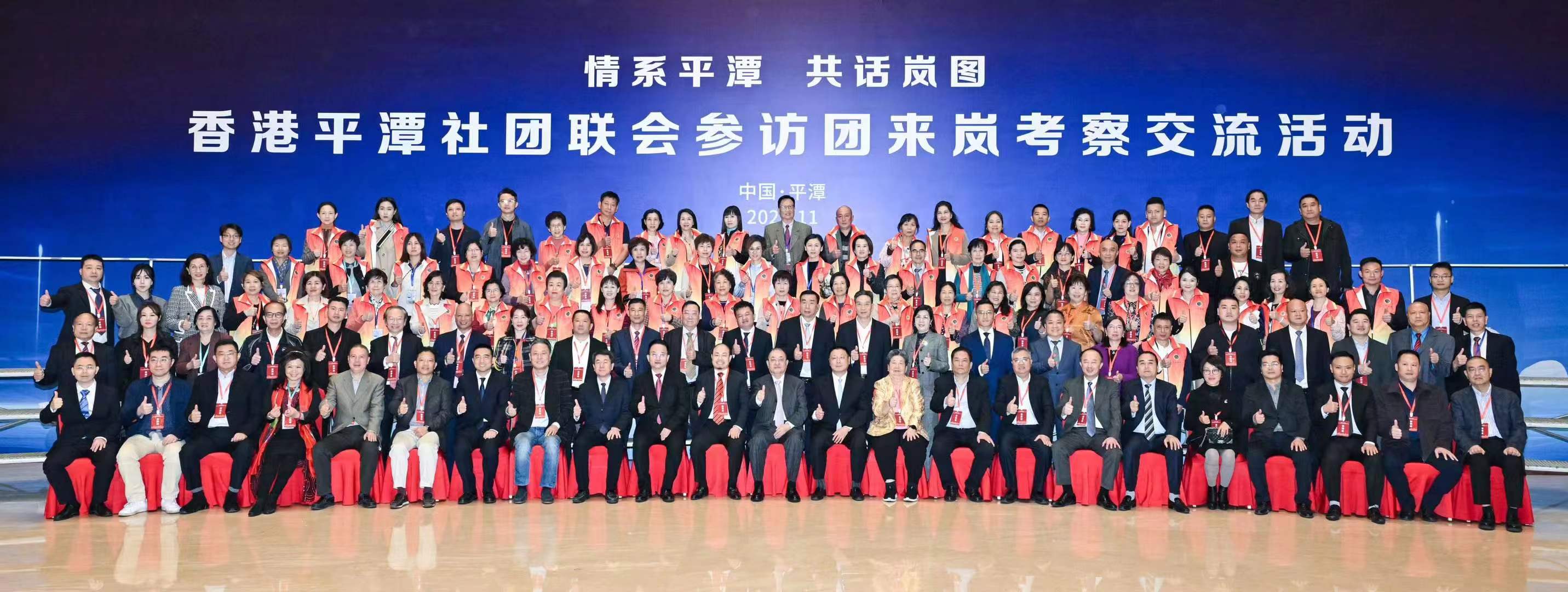 平潭综合实验区党工委书记赖军与香港平潭社团联会主席林官贵率领的参访团一行合影
