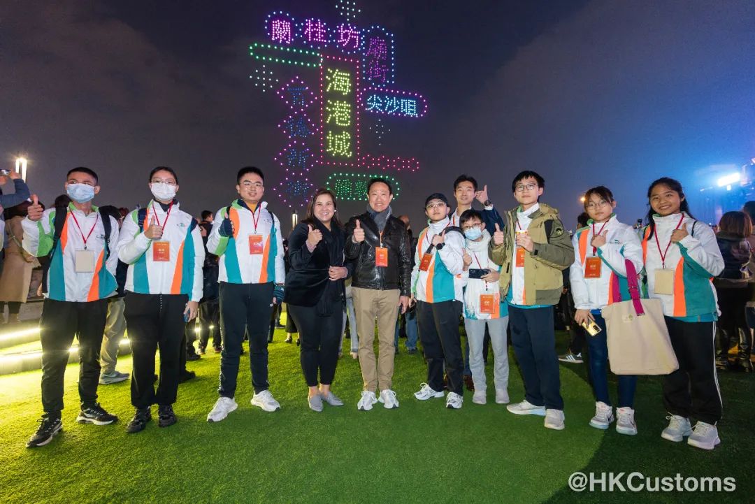 香港海关副关长陈子达携青少年观看“缤纷香港”大型无人机灯光秀