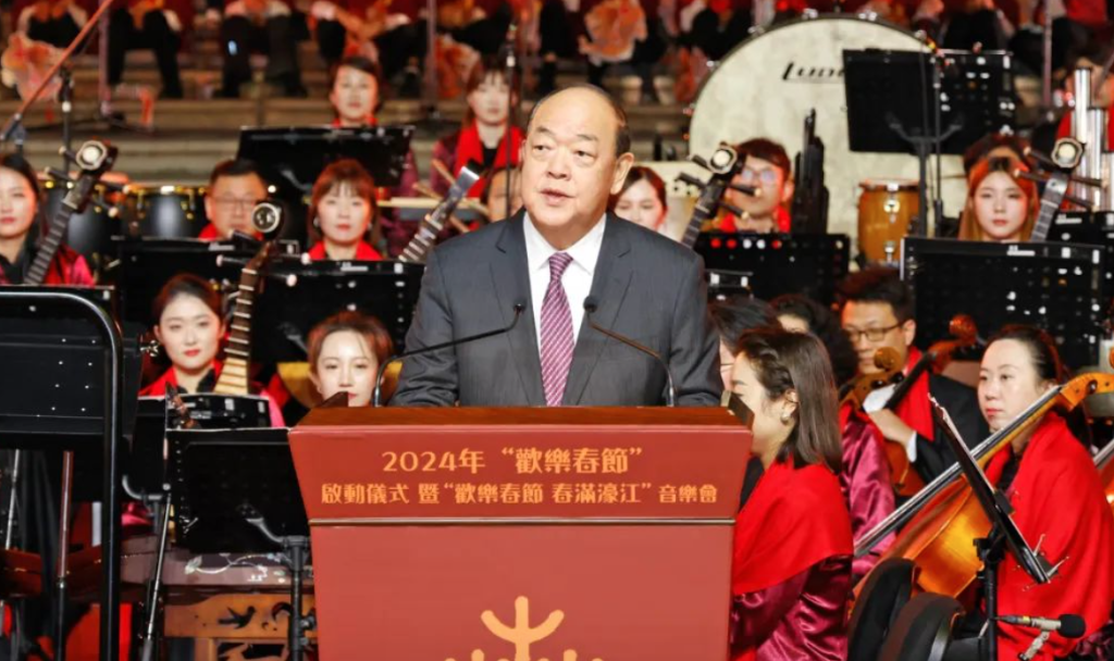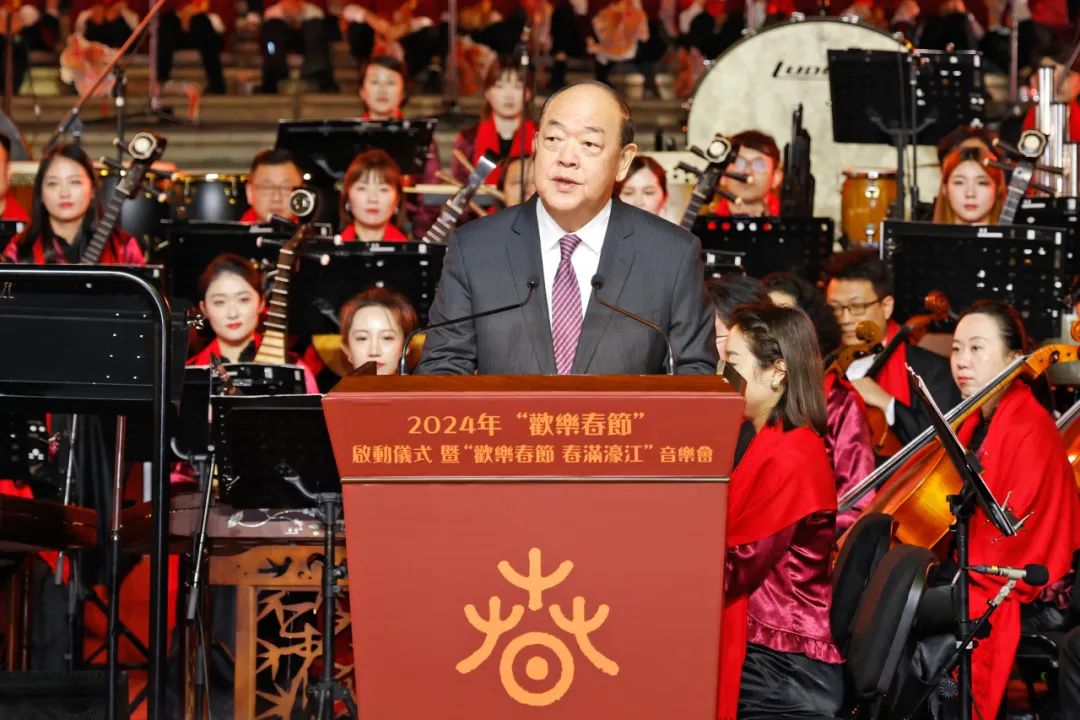 贺一诚致辞时表示,今年是中华人民共和国成立75周年,也是澳门回归祖国25周年,在这一重要时间节点,国家文旅部精心组织的龙年“欢乐春节”系列活动意义深远,澳门特区政府对此表示衷心感谢,并预祝活动取得圆满成功。
