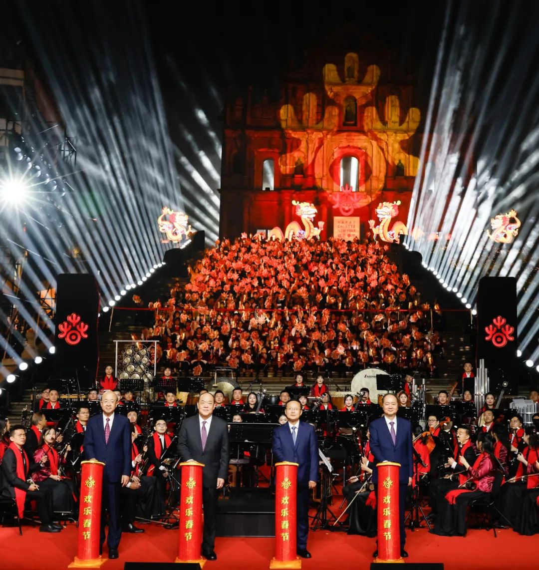 2024年“欢乐春节”启动仪式由行政长官贺一诚、国家文化和旅游部部长孙业礼、中央政府驻澳门特区联络办公室主任郑新聪、外交部驻澳门特派员公署特派员刘显法共同主礼。