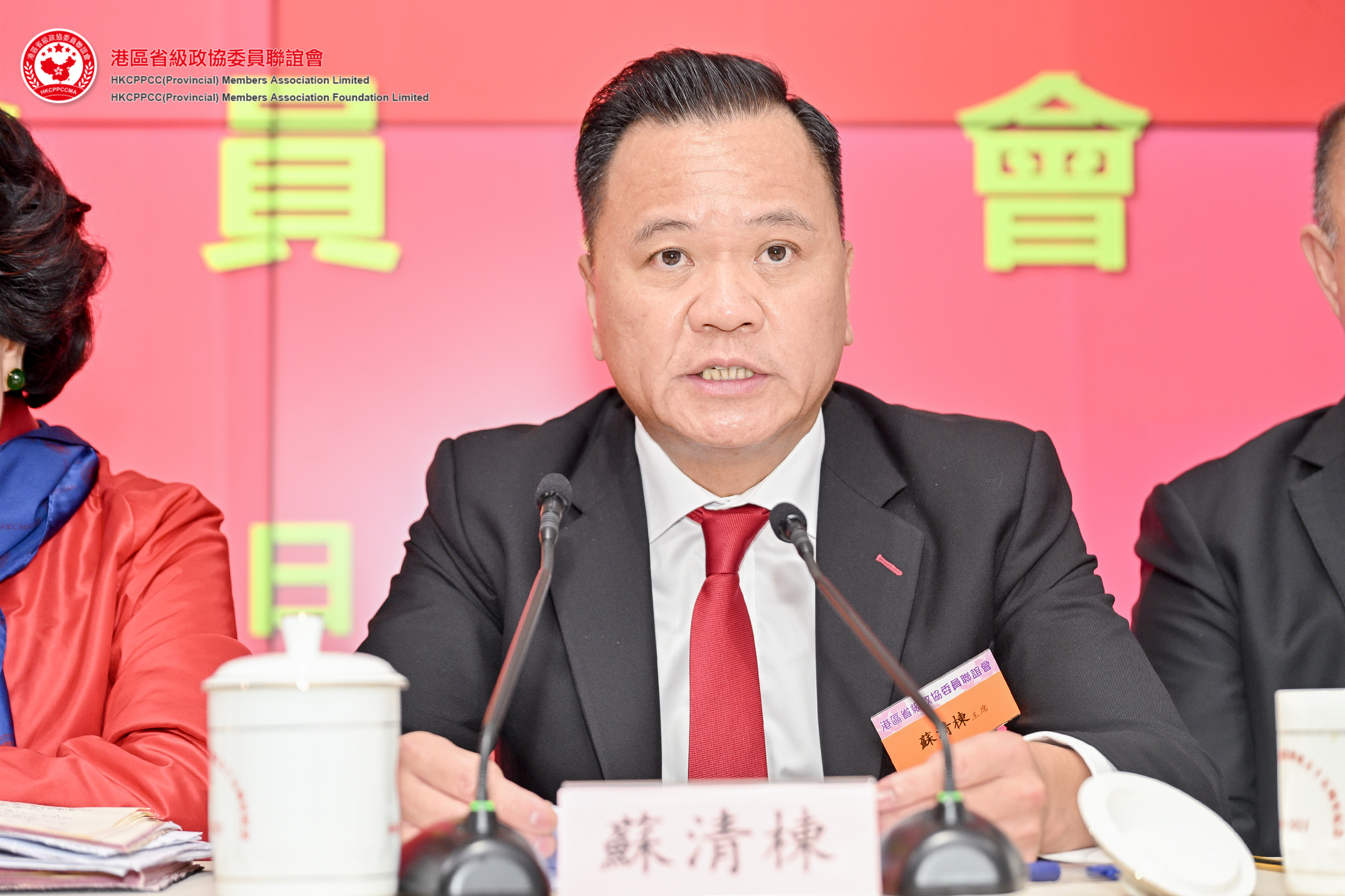 第七届理事会苏清栋主席致辞时表示,在香港踏上「由治及兴」新飞跃阶段时获提名为第七届理事会主席,是无上光荣的使命,也是沉甸甸的责任。他指出,会以胸怀「国之大者」坚定维护国家利益、民族大义和香港整体利益,全力支持特区政府依法施政,全力与反中乱港分子斗争,全力动员港区省级政协委员一起撑香港、建香港,展示港区省级政协爱国爱港新气象,为香港「由治及兴」新局面作贡献。