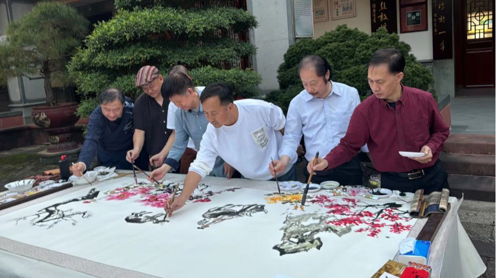 在活动期间,莞港8位艺术家共同开展主题创作活动,共同完成画作《牛镇百花开》,并赠予横沥作为留念,主办方向30位艺术家颁发感谢状。