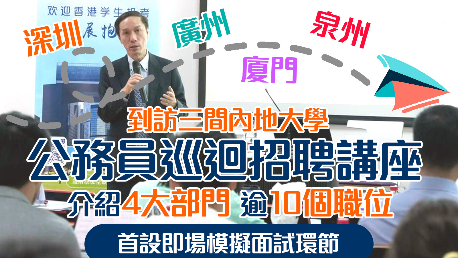 香港特区公务员事务局展开新一轮公务员招聘工作,由一般职系处长陈信禧带领4个部门的代表,明日 (5月27日) 起一连3天到访3间内地大学进行巡回招聘讲座。