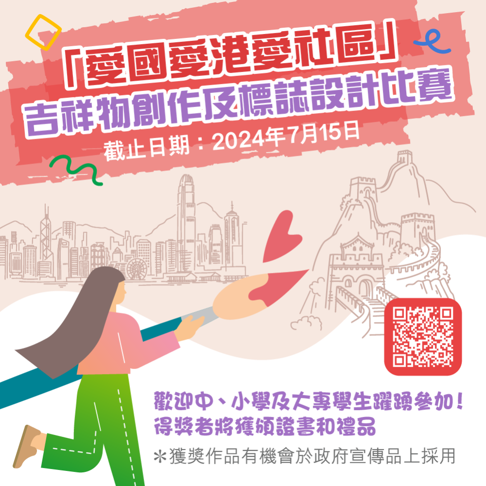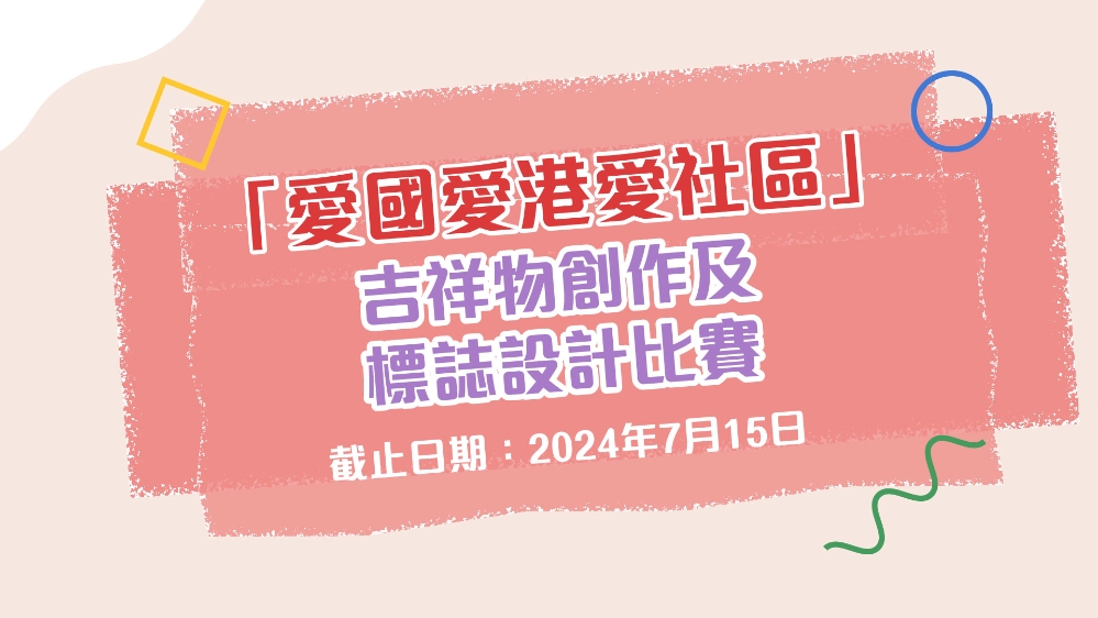 "爱国爱港爱社区"吉祥物创作及标志设计比赛即日(5月30日)起接受报名,欢迎中、小学及大专院校学生踊跃参加。