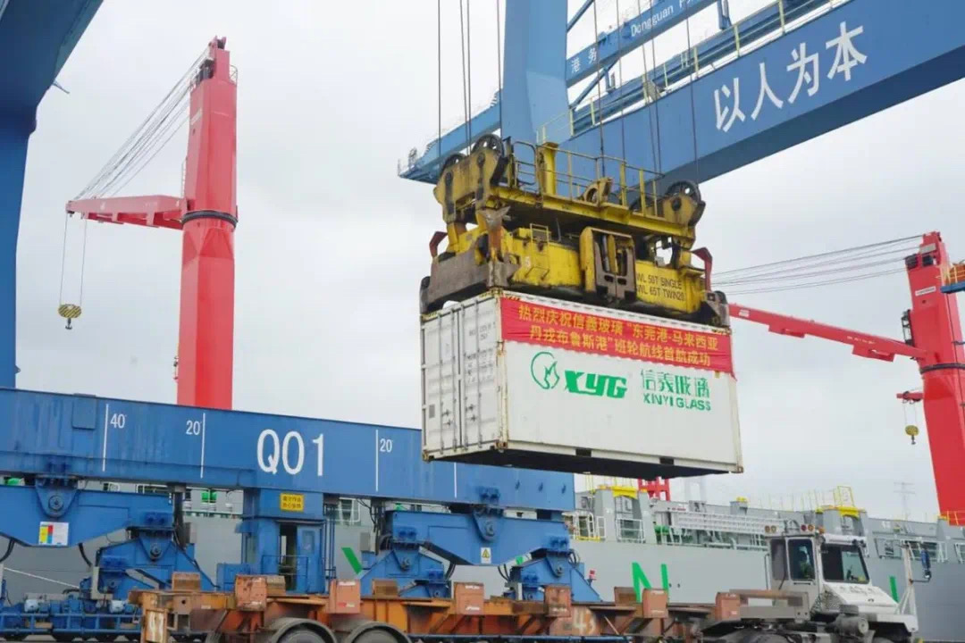 紫荆杂志(记者彭彦)6月12日东莞报道:近日,一条新的集装箱班轮航线“东莞港—马来西亚丹戎布鲁斯港”正式开通,由装载著591个标箱玻璃原料和产成品货物的“M.VXINYIGLASS(信义玻璃)”轮启航,标志著东莞港物流集聚效应的提升和“一带一路”外贸新通道建设的重要突破。马来西亚作为“一带一路”倡议的合作伙伴,与中国的经济合作密切,此航线的开通必将成为双方经济合作的重要纽带和桥梁。