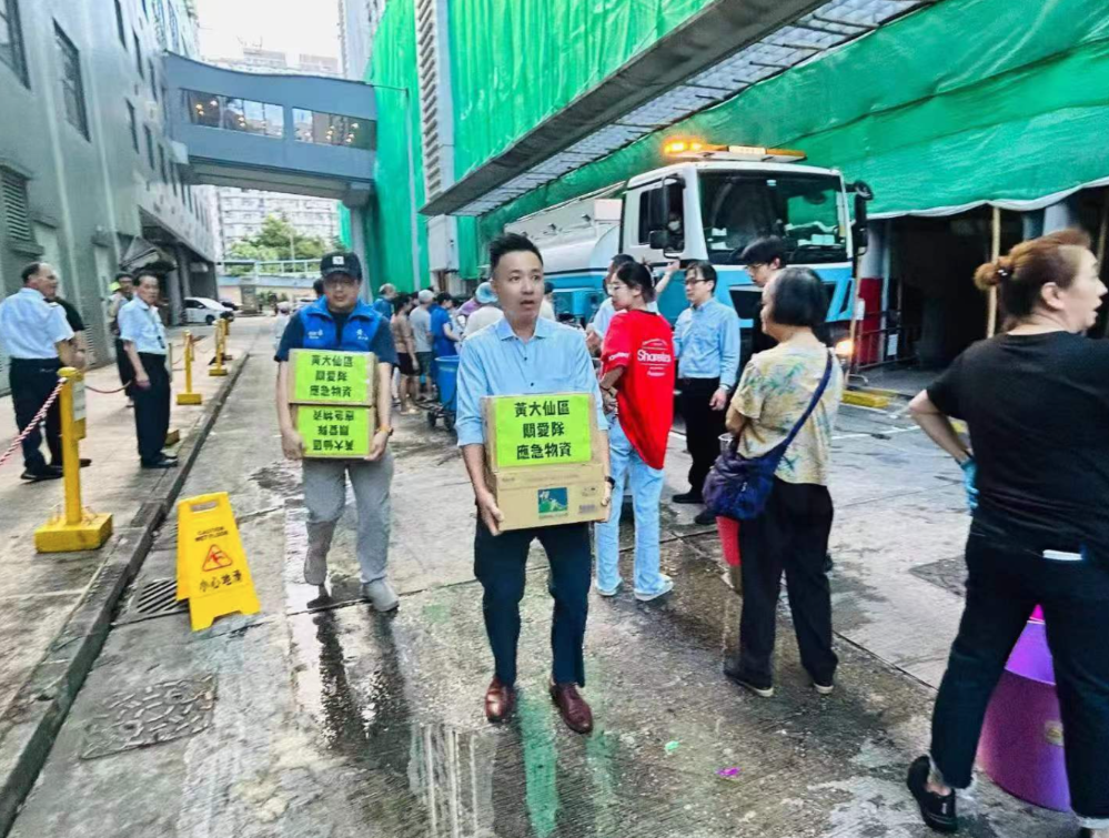 黄大仙民政处、黄大仙区关爱队、黄大仙区议员第一时间启动应急机制,到场跟进情况,并设置临时服务站发放资讯。停水时间由于正值黄昏,居民及餐厅商户正预备晚饭,关爱队、房屋署及水务署立刻安排水车及水缸,供水予居民和餐厅食肆,以解燃眉之急。水车到达后,黄大仙乐富关爱队、横头磡关爱队、天强关爱队等分别在各供水站协助居民商户取水,又透过电话、上门家访方式联络区内居民及长者,协助有需要居民搬运食水,关爱队收到求助后,立刻安排义工提取食水上楼,服务街坊800余人,有长者传回信息表示感谢关爱队关爱居民。