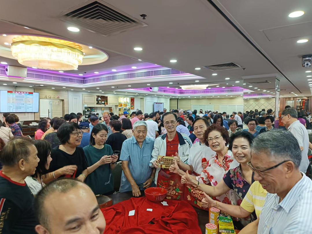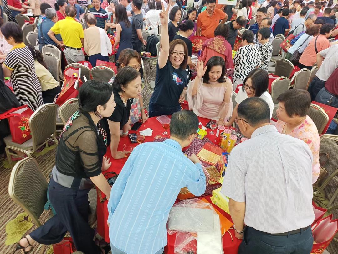 在开心的氛围中,与会宾主齐齐博饼。 众人撒下的骰子徐徐落下,此起彼伏地发出叮当清脆响声,现场欢声笑语和温馨的乡情洋溢,人人乐融融 ,齐博好兆头。