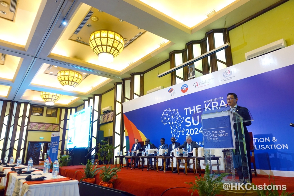 香港海关助理关长(税务及策略支援)许剑于肯尼亚内罗毕出席为期三天(十月七至九日)的「非洲海关及税务会议」暨「肯尼亚税务局(KRA)高峰会2024」。会议主题为「无边界贸易:数码时代的便商利贸」,旨在探讨贸易便利化及全球互联互通的挑战与机遇。