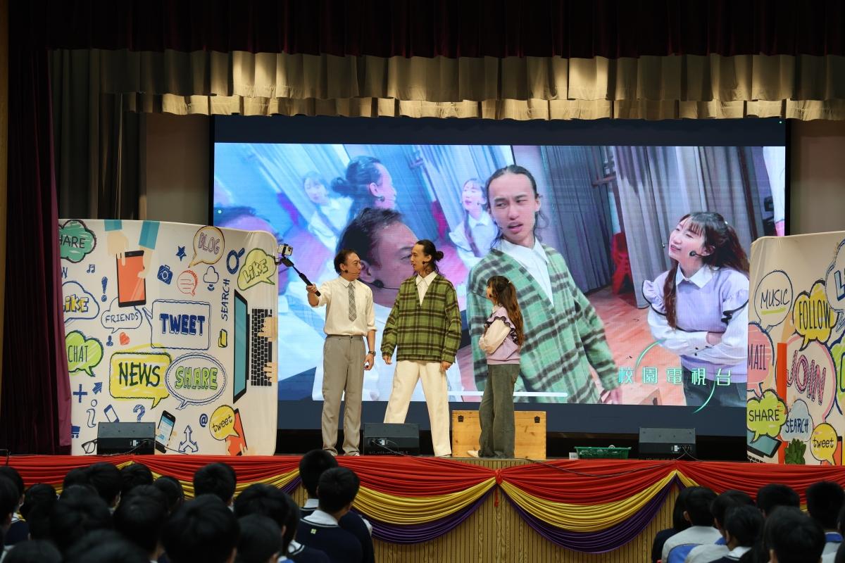 3月4日上午,仁济医院王华湘中学校园礼堂化身专业剧场,由春天实验剧场为全校初中学生带来《齐享健康资讯》短剧。这场寓教于乐的演出,以幽默方式探讨网上资讯陷阱,特别融入音乐剧及实时直播元素,让同学在欢笑中反思健康资讯的真伪及法律界线。剧中男主角梦想成为网红,面对各种诱惑及挑战,多次徘徊在触犯法例的边缘,引发全场热烈互动。