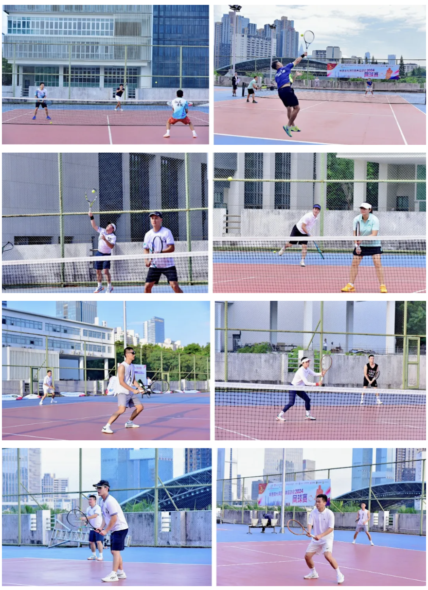 网球赛场上,参赛选手们精神饱满、热情高涨,在高强度、快节奏的比赛中配合默契,充分展现出发球上网、底线穿越、反手击球等网球技巧。运动员们击球精准有力,战术运用巧妙,比分交替上升,现场气氛火热,喝彩声不断。