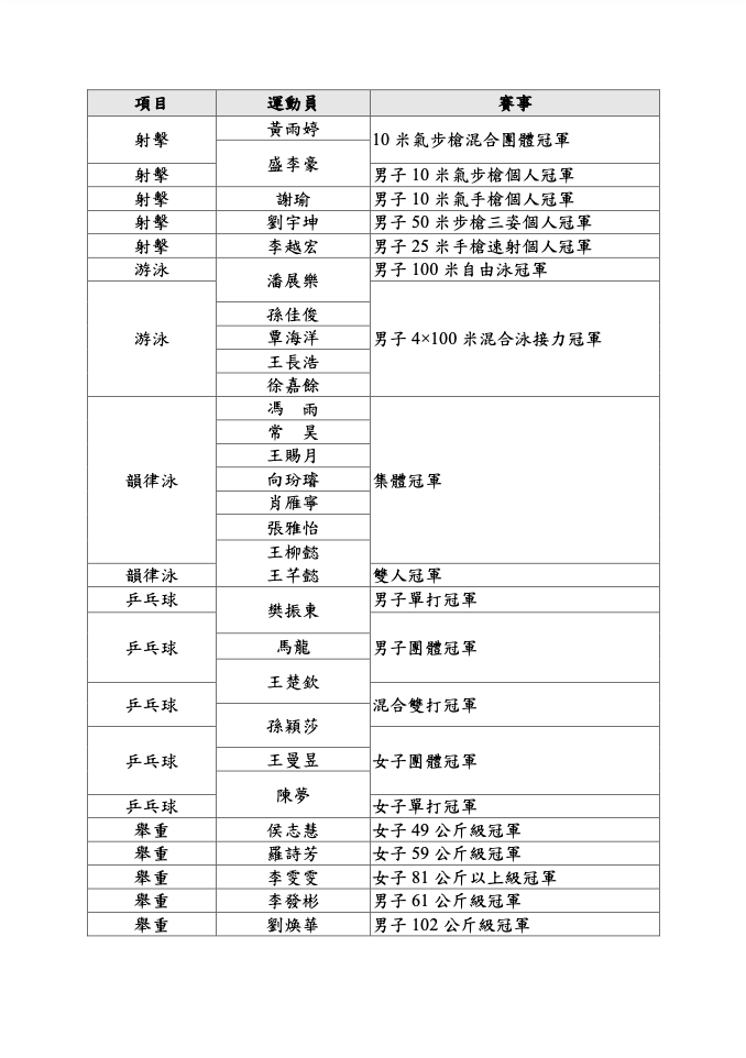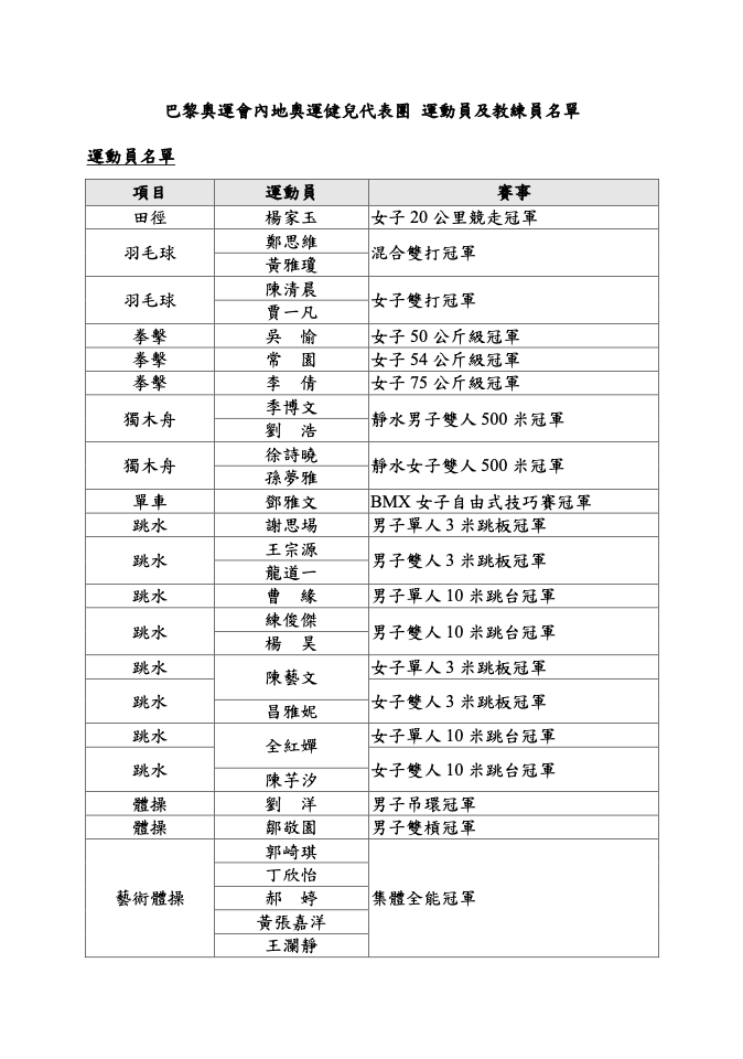 文化体育及旅游局今日(8月23日)公布,于8月29日至31日到香港访问的2024年巴黎奥运会内地奥运健儿代表团,将包括来自16个运动项目共65名运动员和8名教练,名单详见附件。