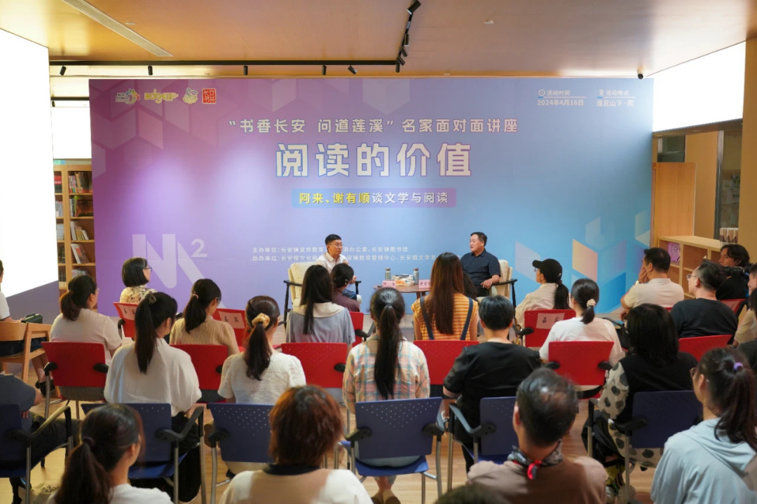 4月18日,著名作家、中国作家协会副主席、茅盾文学奖获得者阿来,广东省作家协会副主席、中山大学中文系教授谢有顺来到长安镇“莲花山下·莞”新型文化空间打卡,并围绕“阅读的价值”,与长安市民进行面对面交流,分享读书心得,带动全民阅读。