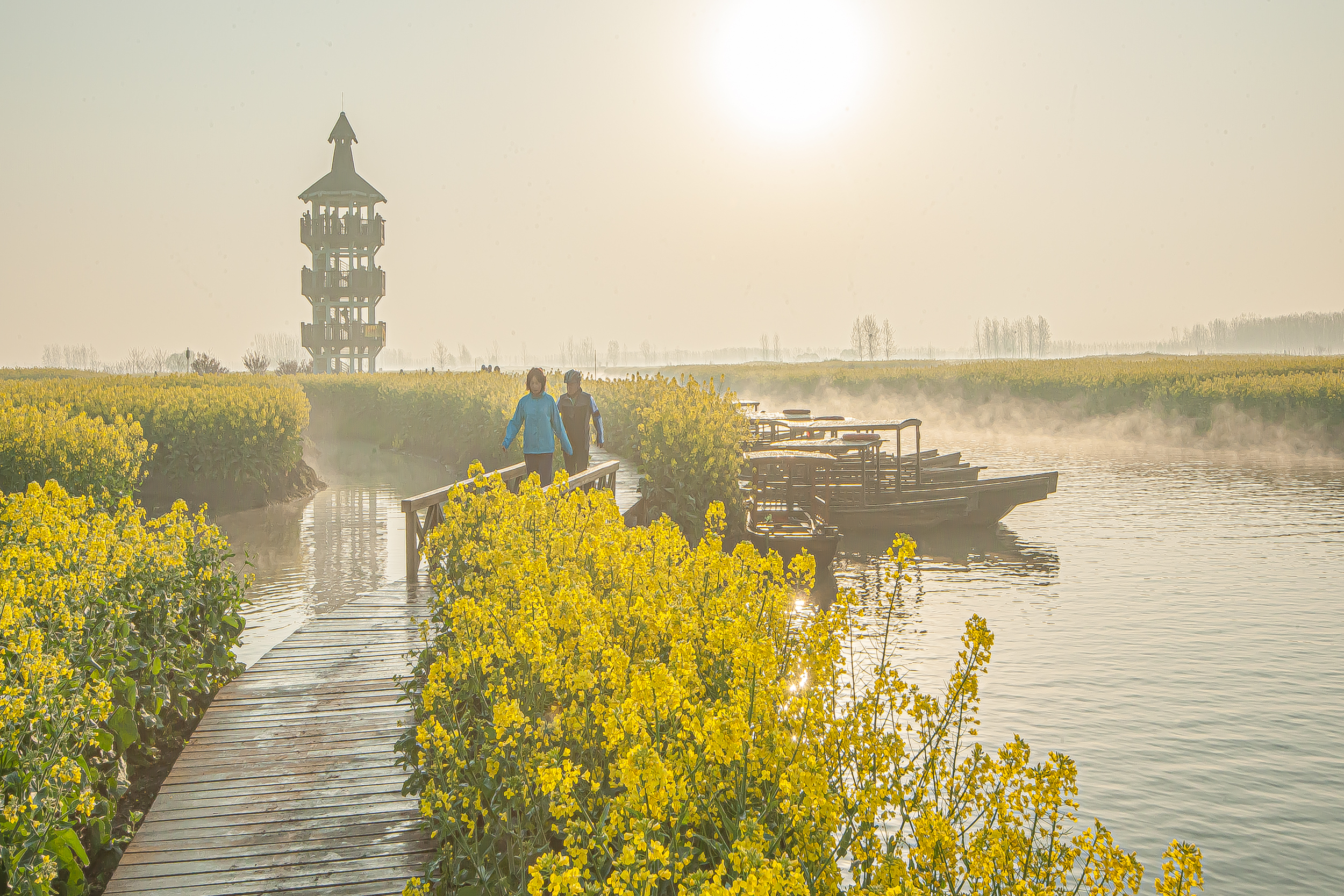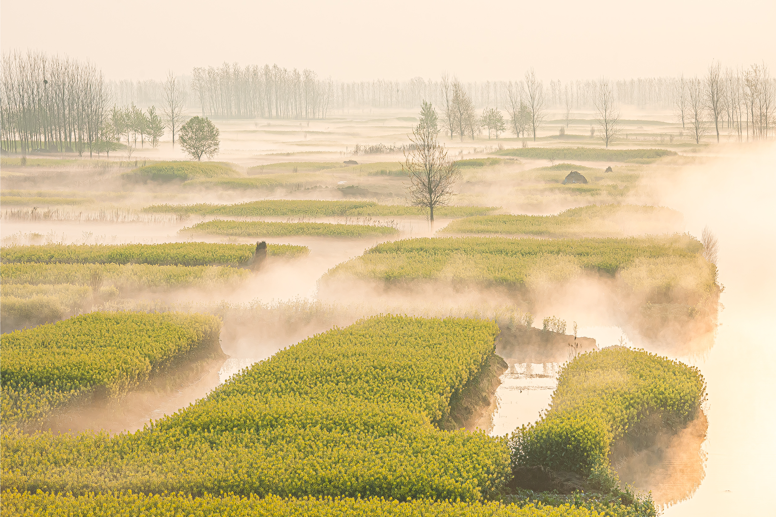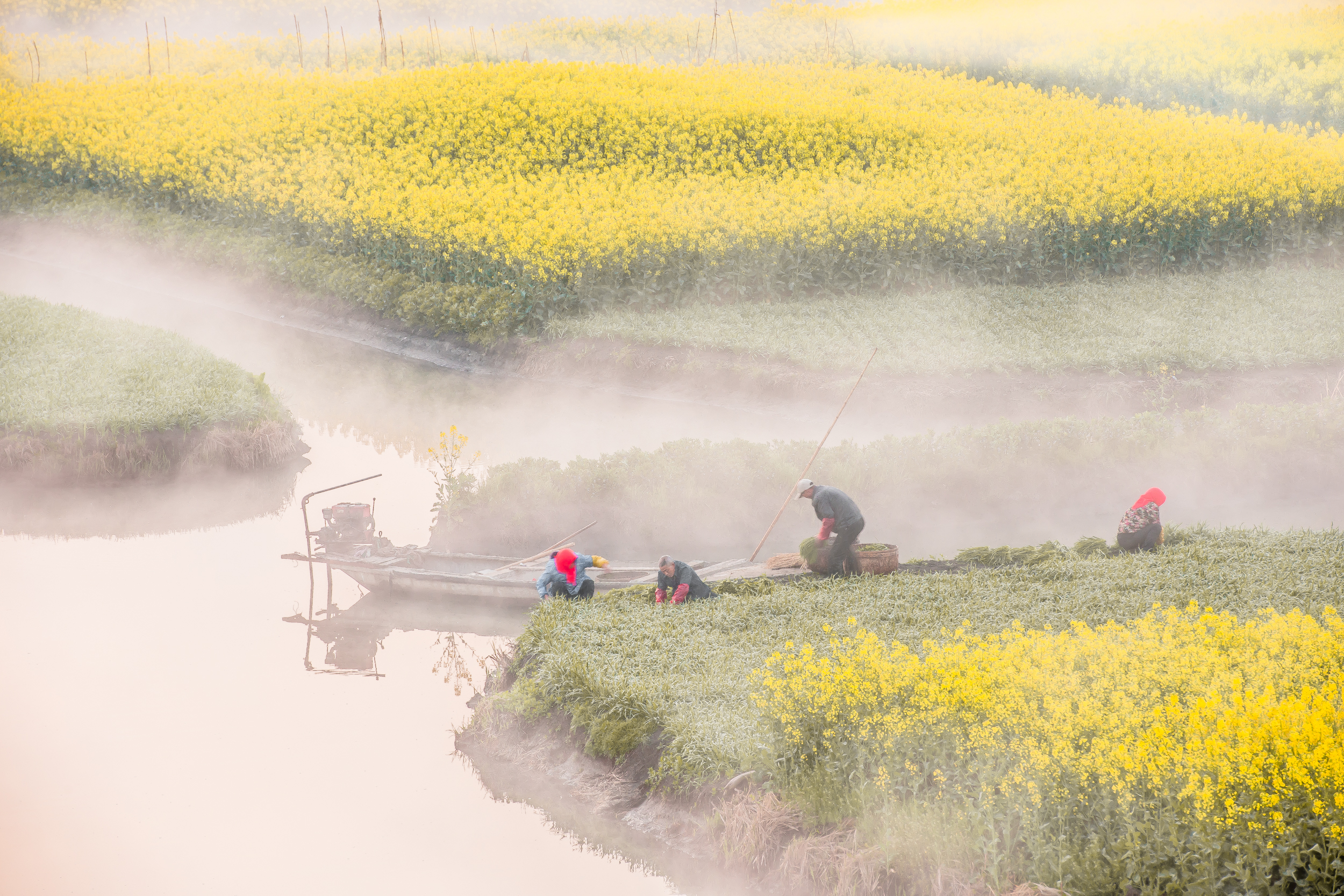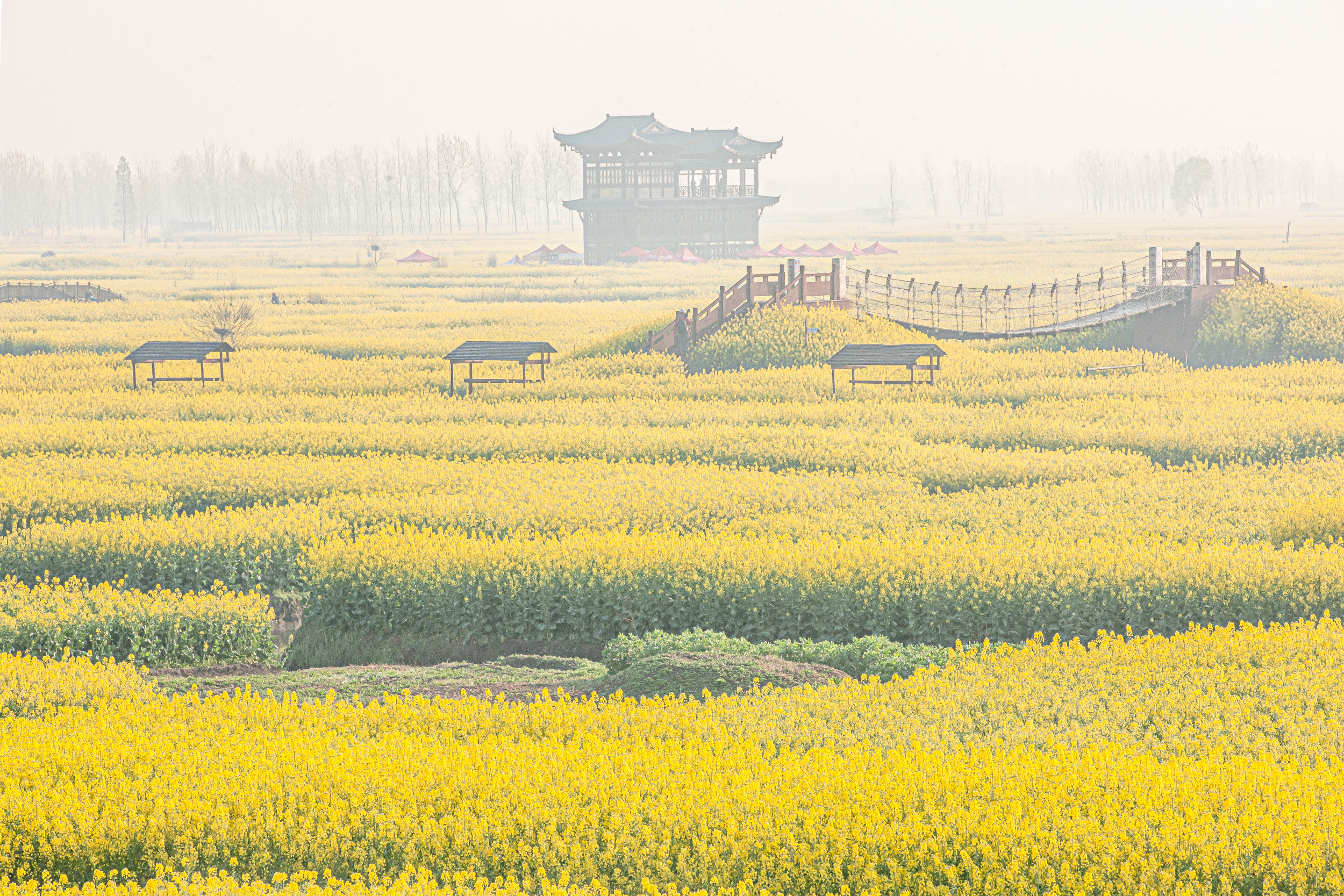 而那金黄色的油菜花,就如同一地金光,铺满了田野。远远望去,彷佛是一片金色的海洋,波光粼粼,熠熠生辉。阳光透过云层,洒在这金黄的海洋上,更添了几分温暖与希望。油菜花的黄,是春天的颜色,也是祖国富强的象征,是农耕文化的瑰宝,昭示着勤劳与收获。