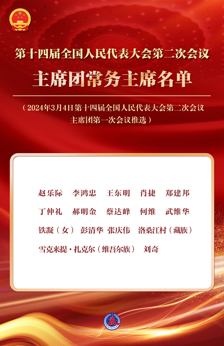 第十四届全国人民代表大会第二次会议主席团常务主席名单
