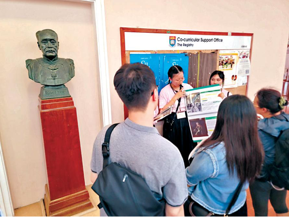 拥有逾百年历史的港大,近年成为许多内地游客的热门打卡景点。为了疏导人流,港大今年五月起实施预约到访校园安排,并在七月起推出校园导赏团,由学生导赏员带领游客参观大学校园。