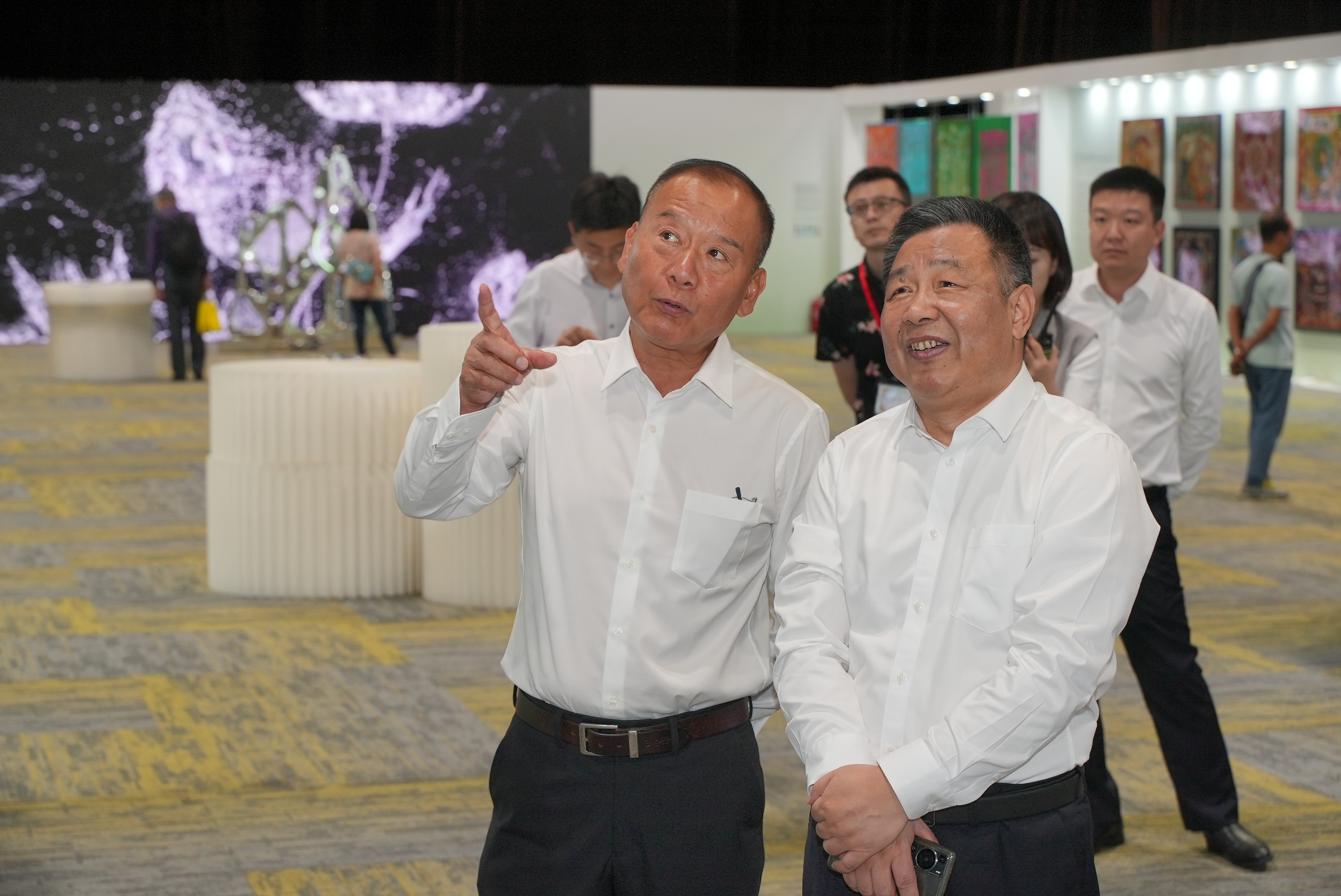 展览期间,紫荆文化集团董事长许正中、总经理文宏武,分别来到中国“文旅视听”沉浸展参观体验。