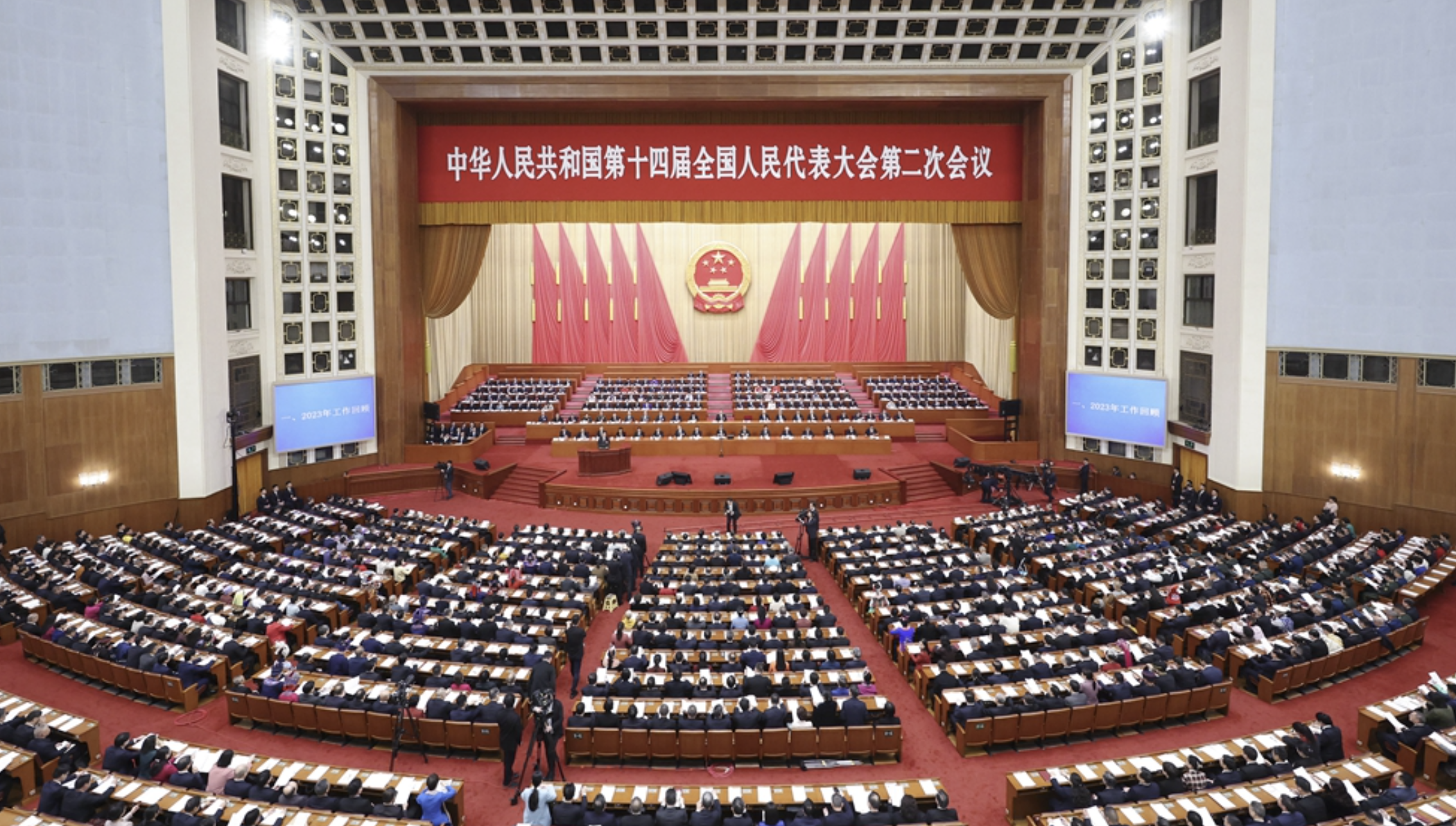 十四届全国人大二次会议5日上午在人民大会堂开幕,习近平等党和国家领导人出席开幕会,国务院总理李强向大会作政府工作报告。