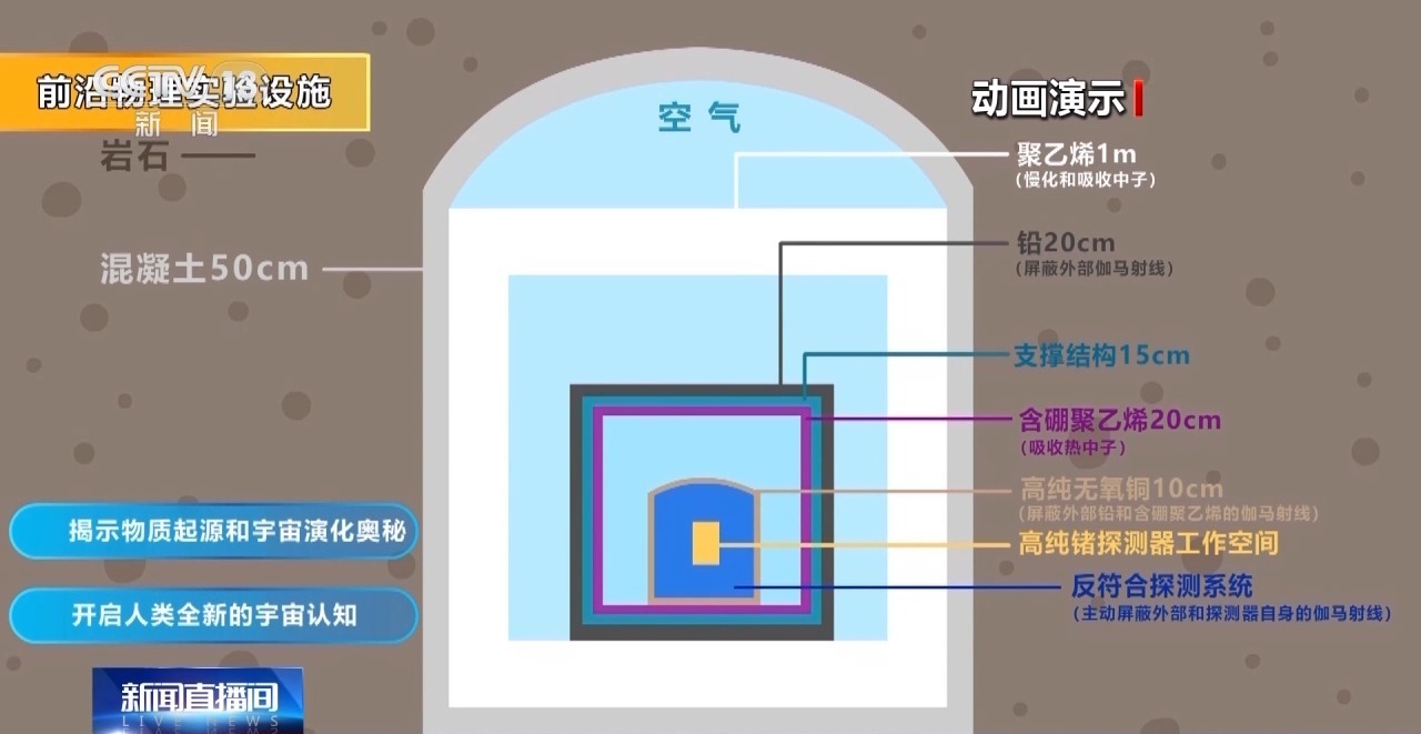 一是空间最大。容积超过33万立方米,是第二大的格兰萨索实验室的1.8倍,安装更大探测器,容纳更多科学实验。