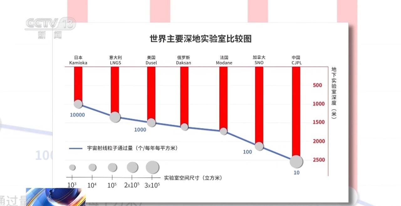 二是埋深最深。超过2400米,宇宙线通量只有地面的一亿分之一,全球最低。