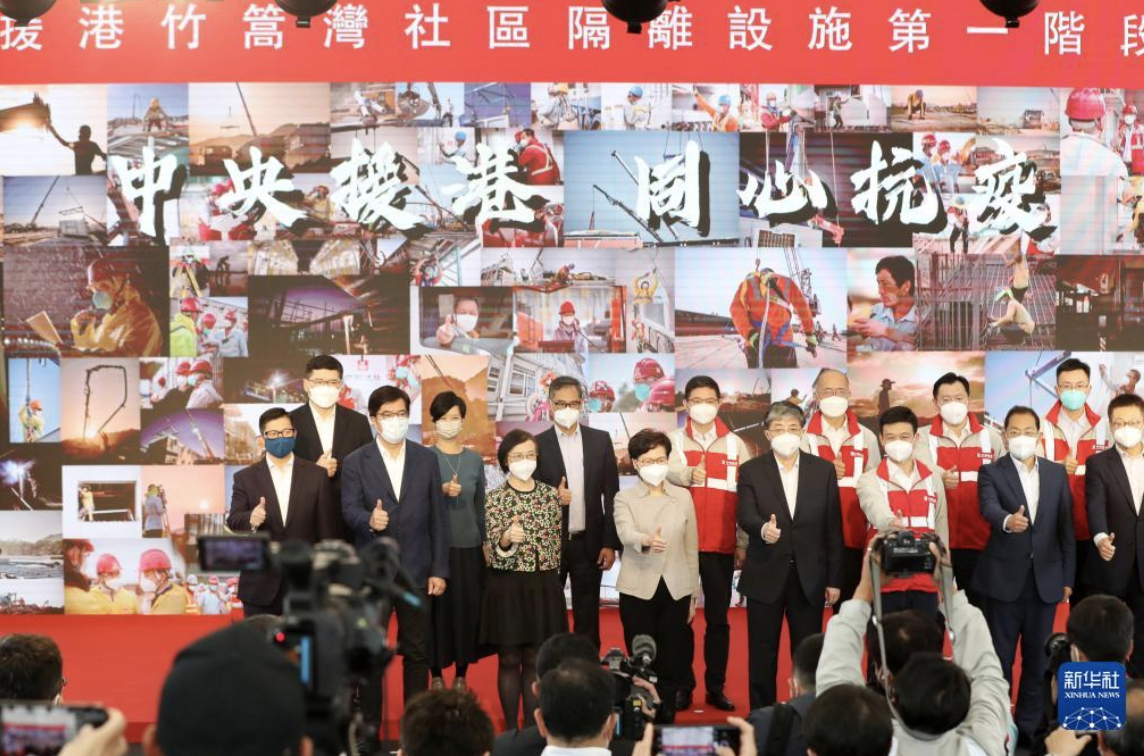历经两个月的紧张建设,中央援建香港的竹篙湾社区隔离治疗设施第一阶段工程19日完工交付。当天交付使用的首批设施有逾1000个房间,涉及逾2000个床位。