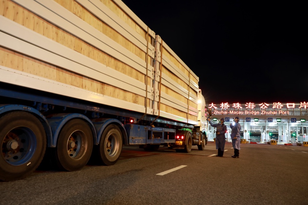 拱北海关所属港珠澳大桥海关充分发挥大桥口岸24小时通关优势,全力保障抗疫物资安全高效通关。