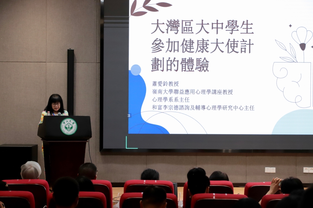 在研讨会上,萧爱玲教授带来题为《大湾区大中学生参加健康大使计划》的报告,向与会嘉宾分享并介绍了由岭南大学主办的健康大使计划(Wellness Ambassadors Program)的四大目标:促进学生身心健康,培养学生的心理学理论知识和基本辅导技巧,运用所学知识和技能惠及自己及身边的人,并通过循证实践评估计划的有效性。赢得了与会嘉宾的广泛赞誉与热烈反响,众多高校纷纷表达了加入这一计划的热切愿望。