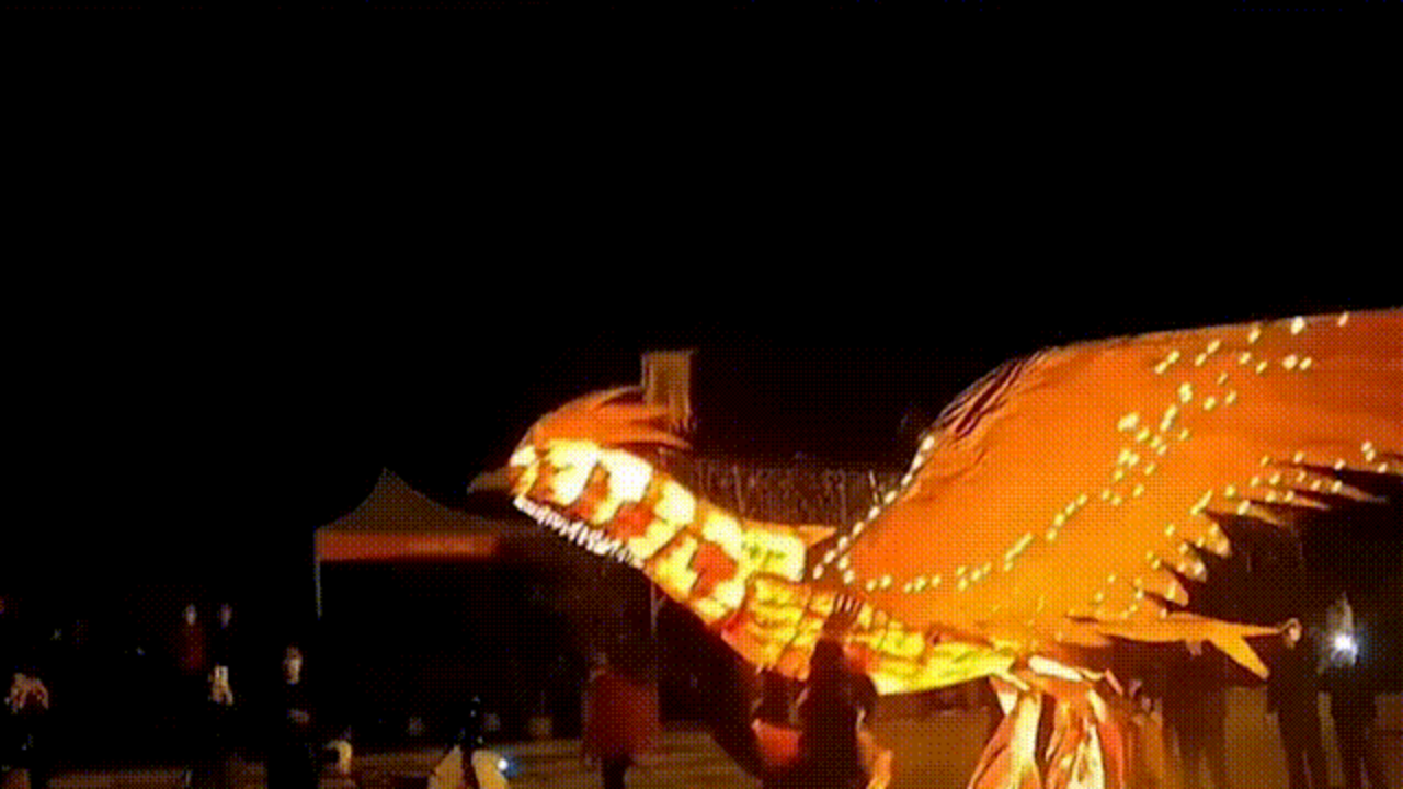 富贵吉祥的火凤凰飞天秀,千万不要错过,见者吉祥富贵,期盼好运降临活动期间每天三场,第一场19:30 ,第二场20:30 ,第三场21:30。