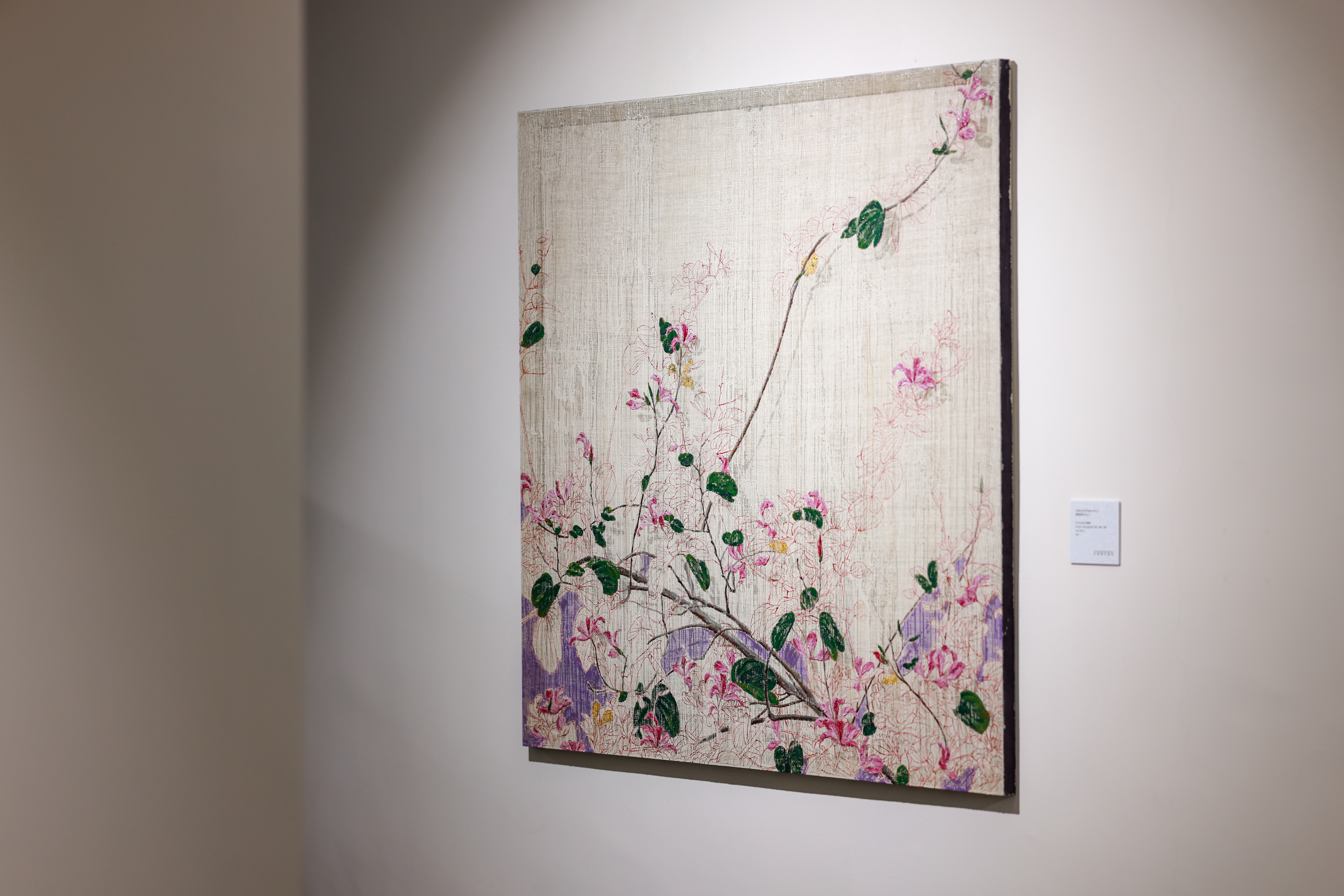 本次展览展出最多作品的系列《紫色和花》诞生于疫情时期,是艺术家少有的回归当下现实日常的系列。此系列作品源于艺术家上海工作室窗外的紫荆花,更源于女儿的出生——在那一年里,艺术家开始沉浸于家庭生活与现实的日常,甜美的粉紫色自然地浮现在他的脑海中。这一系列作品呈现出艺术家在不同时期中对于花姿态的观察,花叶任性而娇艳地伸长。