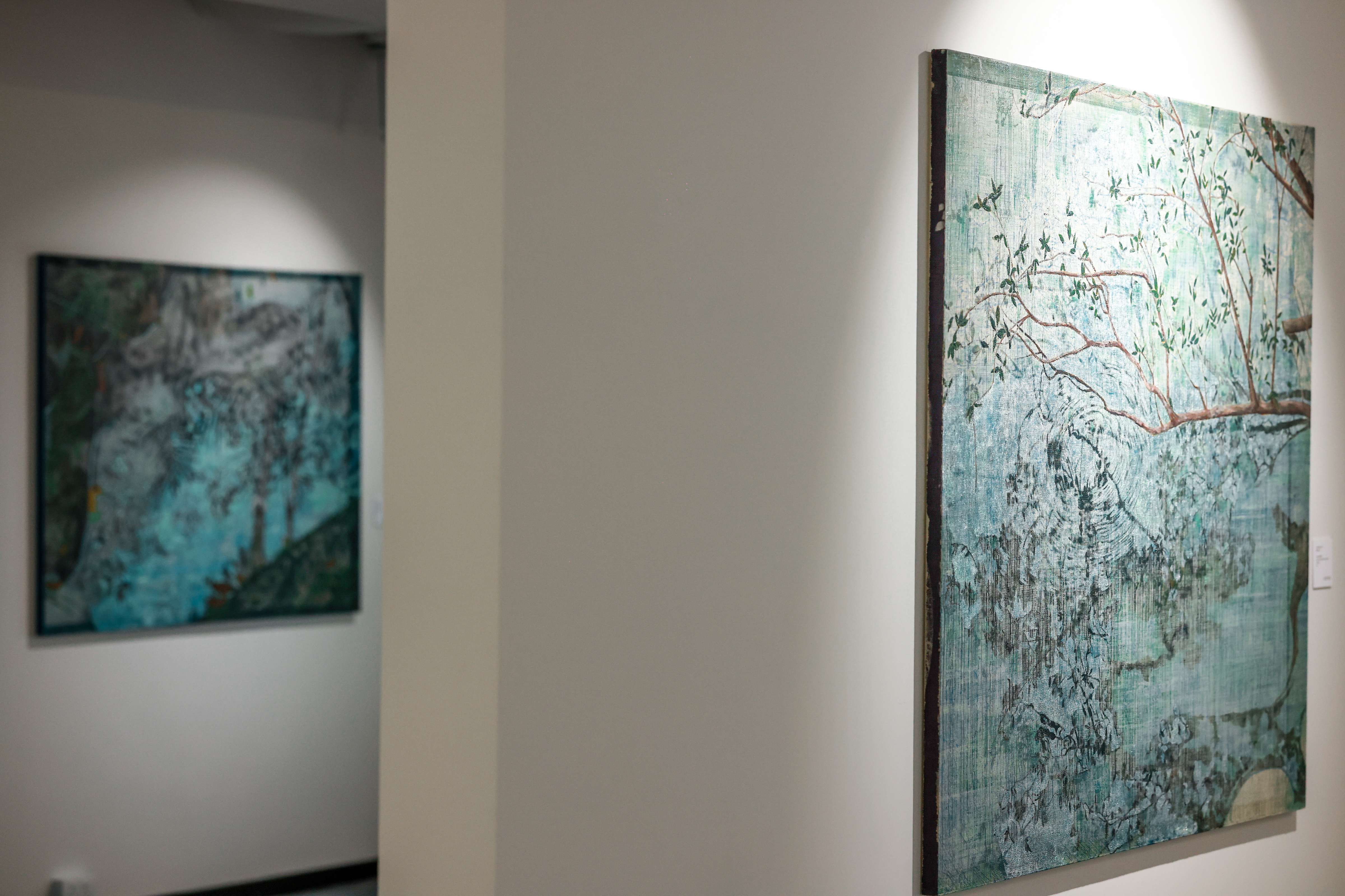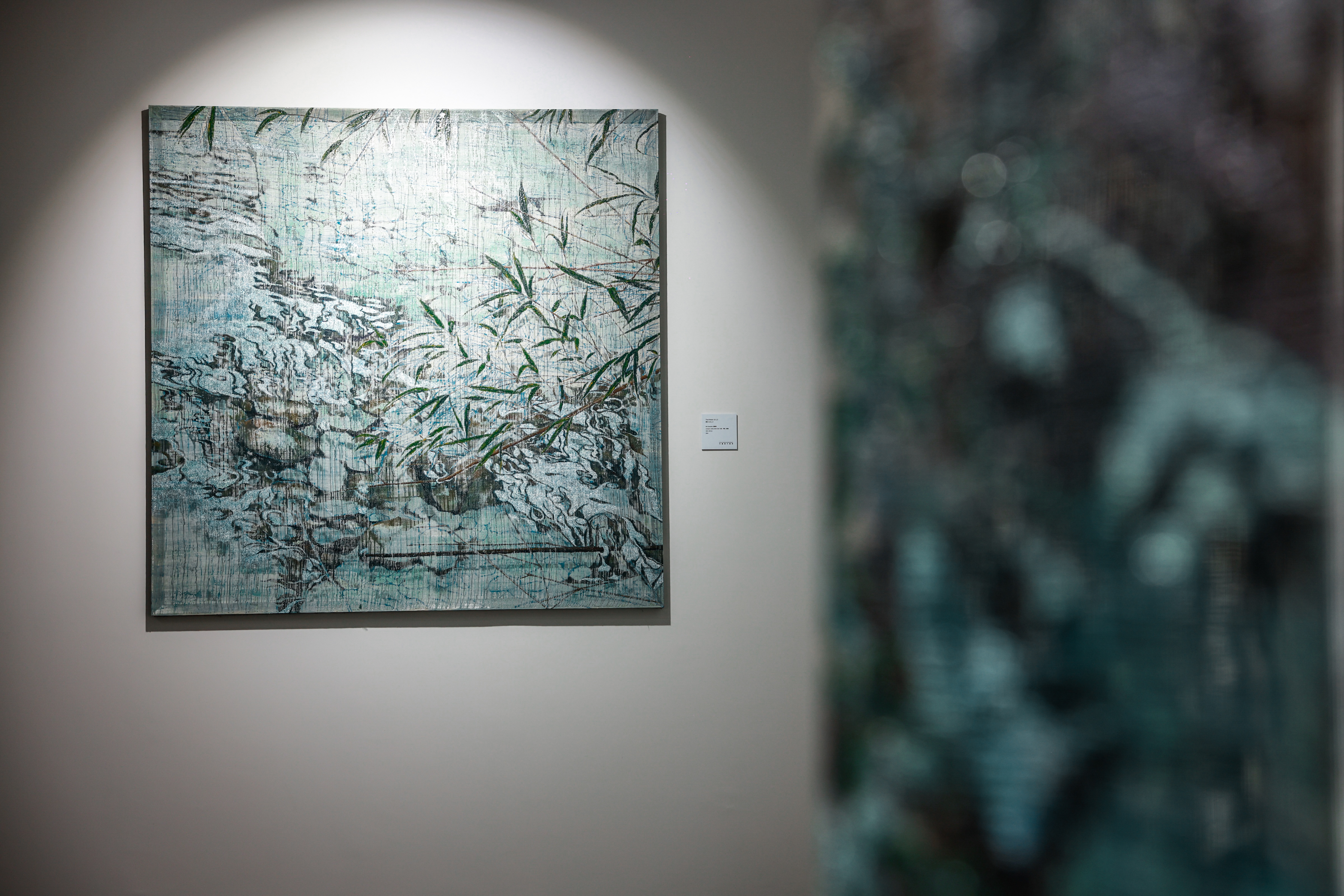 《那水》系列呈现出山野在极致宁静间旺盛的生命力。画作中的植物在水之上,在水之围,在苎麻上攀爬生长。植物、水与时间,物理性与观念性的共同流动下不断幻化,却指向生命力的真实。
