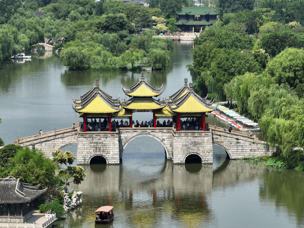 瘦西湖风景区是扬州的名片,是清代康乾时期即已形成的湖上园林群,融南方之秀、北方之雄于一体。窈窕曲折的一湖碧水,串以徐园、小金山、五亭桥、白塔、二十四桥、万花园、双峰云栈等名园胜迹,风韵独具而蜚声海内外。