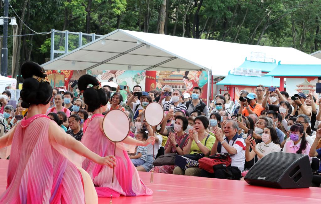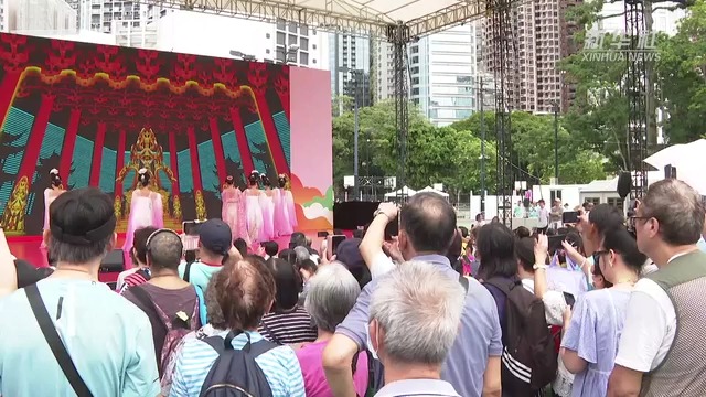 1日的香港维多利亚公园霓裳飘舞、珠翠环绕,唐文化体验区里唐装美女巧笑倩兮,一派古风古韵的盛世景象。“维园庆回归”活动正在这里举行,其中陕西西安展区主要展示了大唐文化。
