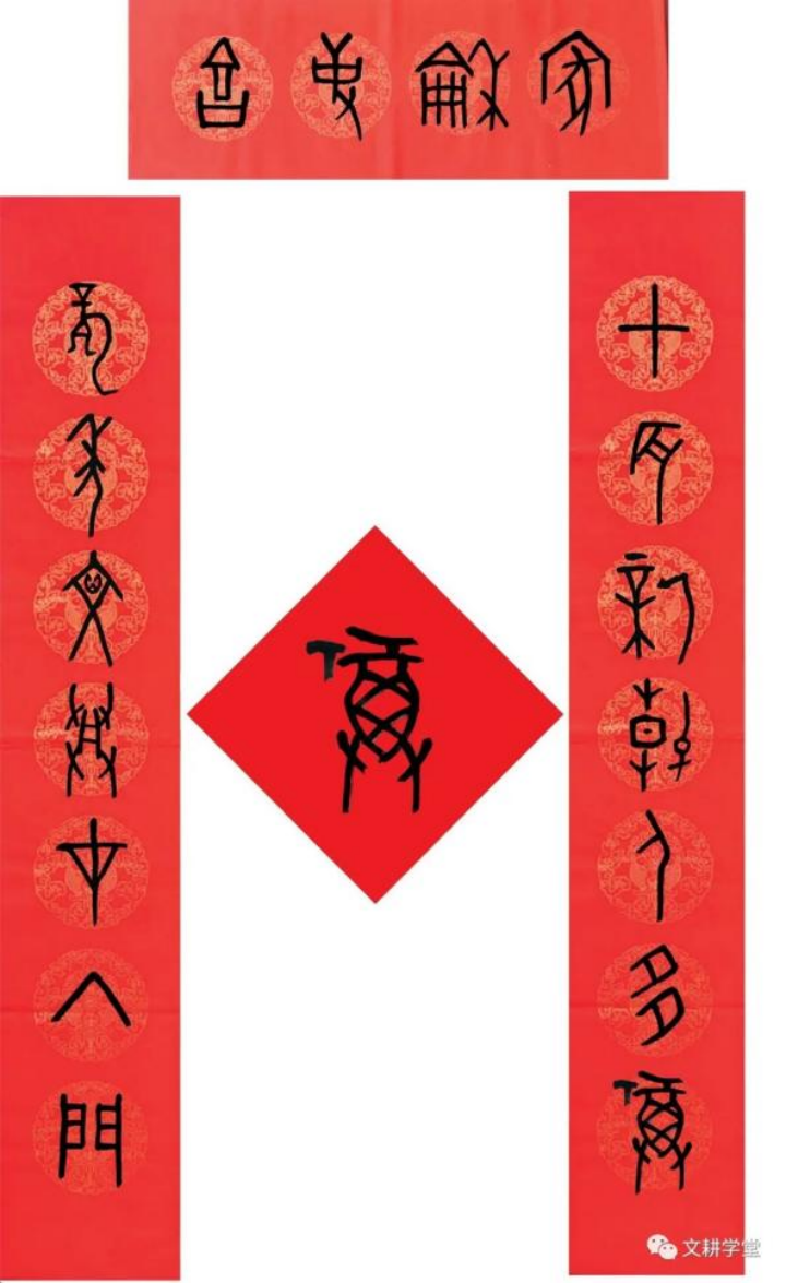 第三:上下联的字数。一般情况下以奇数为主,这幅甲骨文春联七言,还有九言,十一言的等等。奇数在中国文化中属于阳数。
