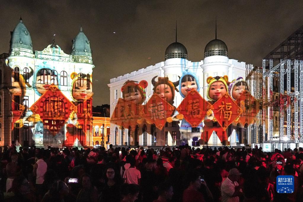 19日晚,巴西东北部城市累西腓地标“零点广场”,光影交错、乐声悠扬,一场春节大型灯光秀点亮了这座老城的夜空,鲜艳的五星红旗、红灿灿的中国剪纸、吉祥的灯笼“福”字……拥有近200年历史的古建筑披上了喜庆的中国春节盛装。2022年11月,累西腓市政府通过法案,成为巴西首个将中国春节设立为官方节日的城市。