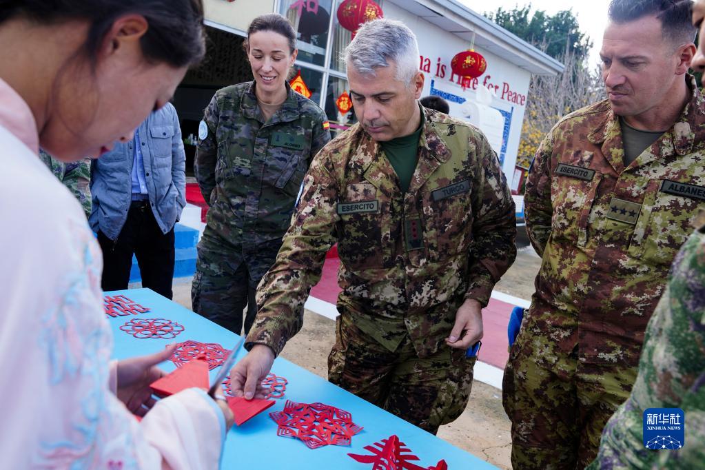 ——春节前夕,联合国驻黎巴嫩临时部队参谋长布鲁诺·赫鲁伊准将来到位于黎巴嫩南部辛尼亚村的中国营区,向中国维和官兵拜早年,一道写春联、剪窗花、包饺子。在马里,各国维和人员与中国维和医疗分队官兵相聚在中国营区,共同为安宁祈福、为和平守岁。