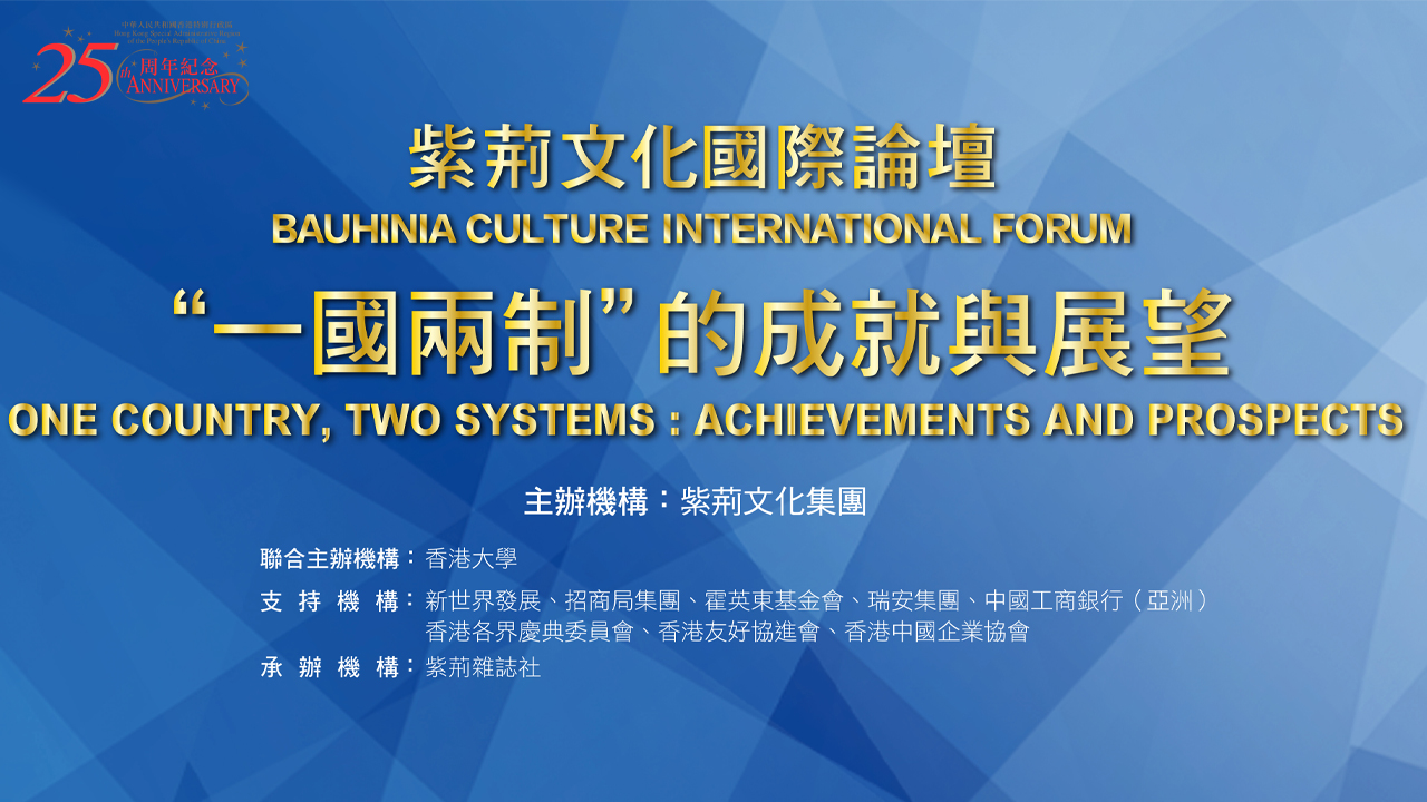 此次论坛由香港大学联合主办、紫荆杂志社承办,共邀请了来自美国、英国、瑞士、澳大利亚、马来西亚和香港特区的19位国际知名专家学者、著名企业家,或亲临现场、或视频发言,回顾总结香港回归25周年的成就和经验,为香港未来发展把脉和提出建议,展示了香港未来发展的美好前景,展现了对香港实施“一国两制”的充足信心。